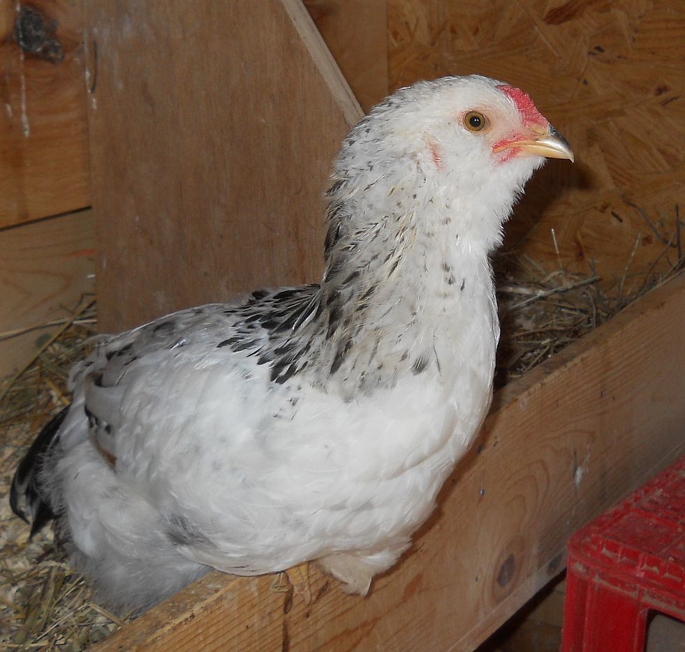 Adorable sister, Serena, who looks like a pure Delaware pullet. She's a doll, like her mama, Rita. She and Gabriel are full siblings.