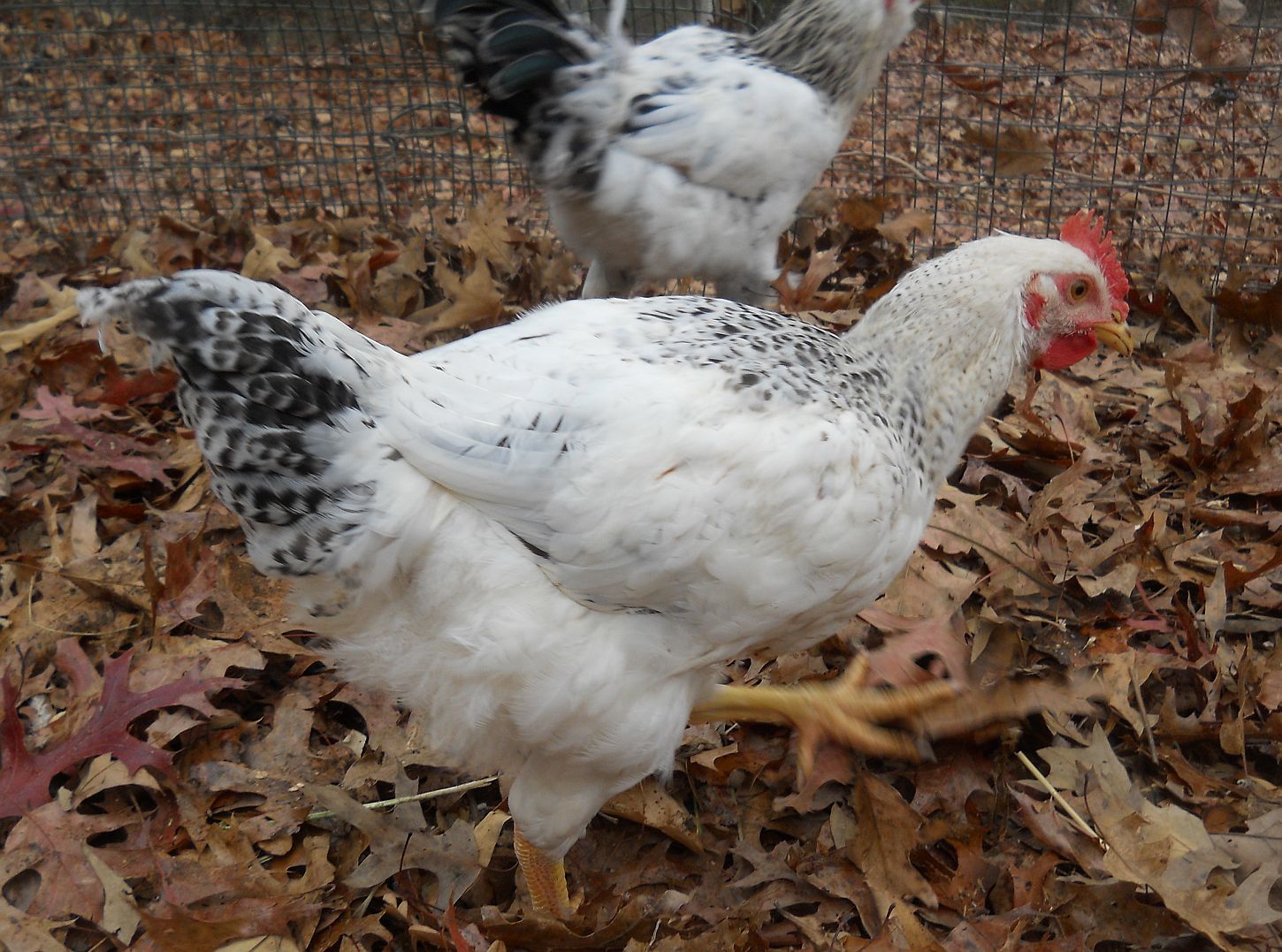 I just noticed something about Deacon. He has no spur nub on his left leg. The right one has a normal spur bump, but the left one has a slighly raised area on the leg, but no bony protrusion at all. Looks like he'll not have one there. Defective hen produces defective son. He's sweet as pie, which is why I was able to even see it-I was close to him, talking to him while he was on the steps during free range time and I touched his legs and saw the absence of it.