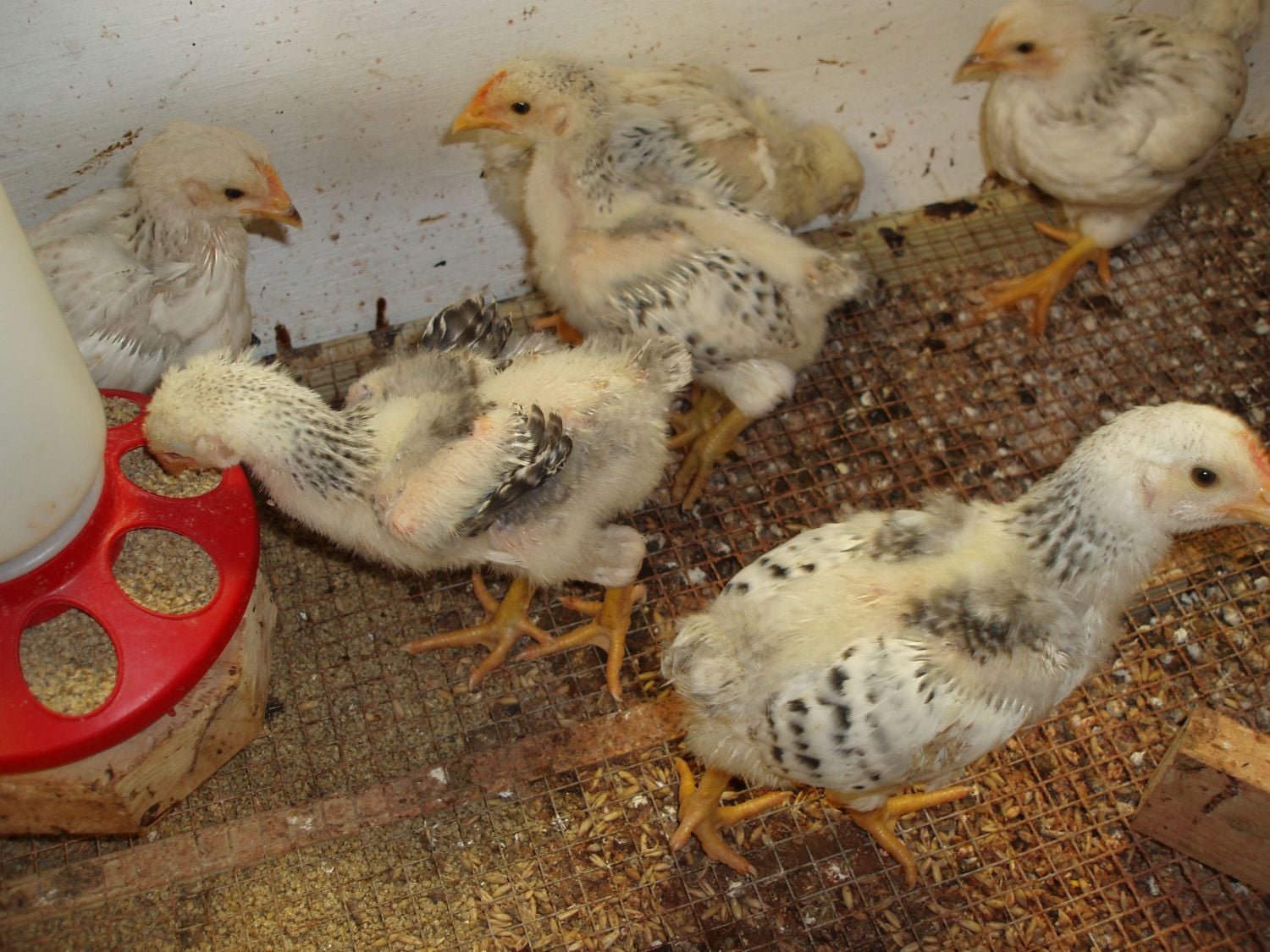 The oldsters have won back the feeder and are schooling the youngin's as to their place in the world. All are thriving and foraging well and I'm very impressed with their growth and hardy vigor. I'll be placing them a roost soon as they are able to fly up very high already. It will keep them cooler in the hot summer nights to be up and out of the bedding.