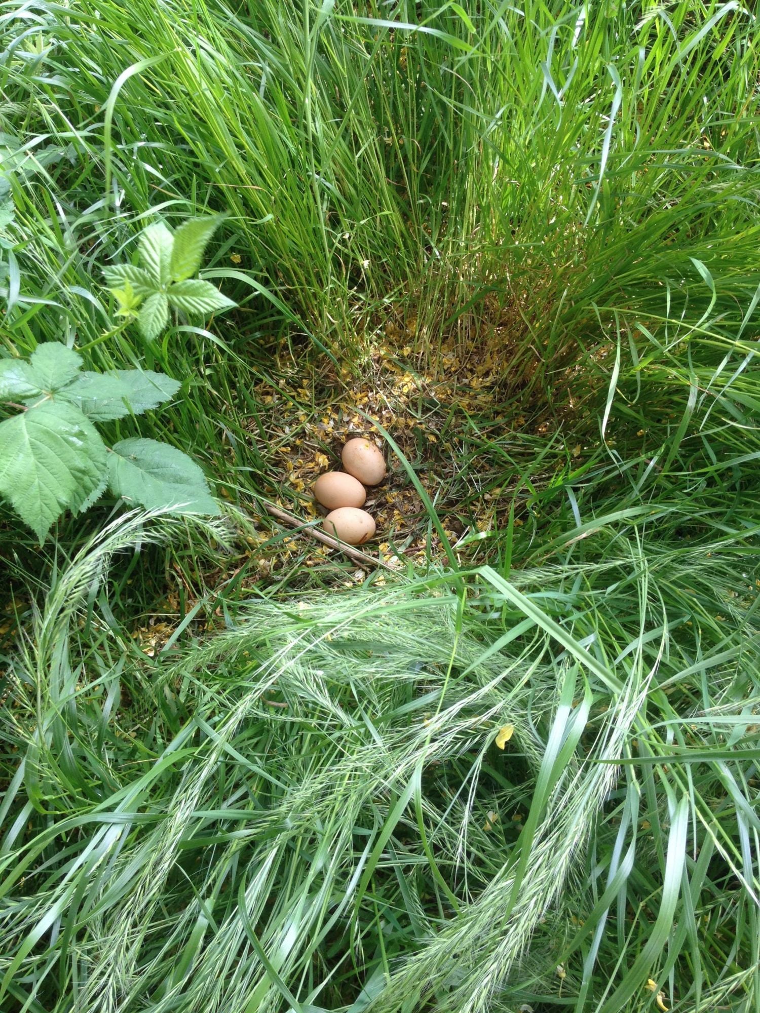 I was thinking that, too. I'm curious to see if she wants to sit on the eggs tonight -- I scared her off the nest every time I got close, but she kept getting back on. The nest is inside the Delaware run, but that isn't as secure as the coop by a long shot.