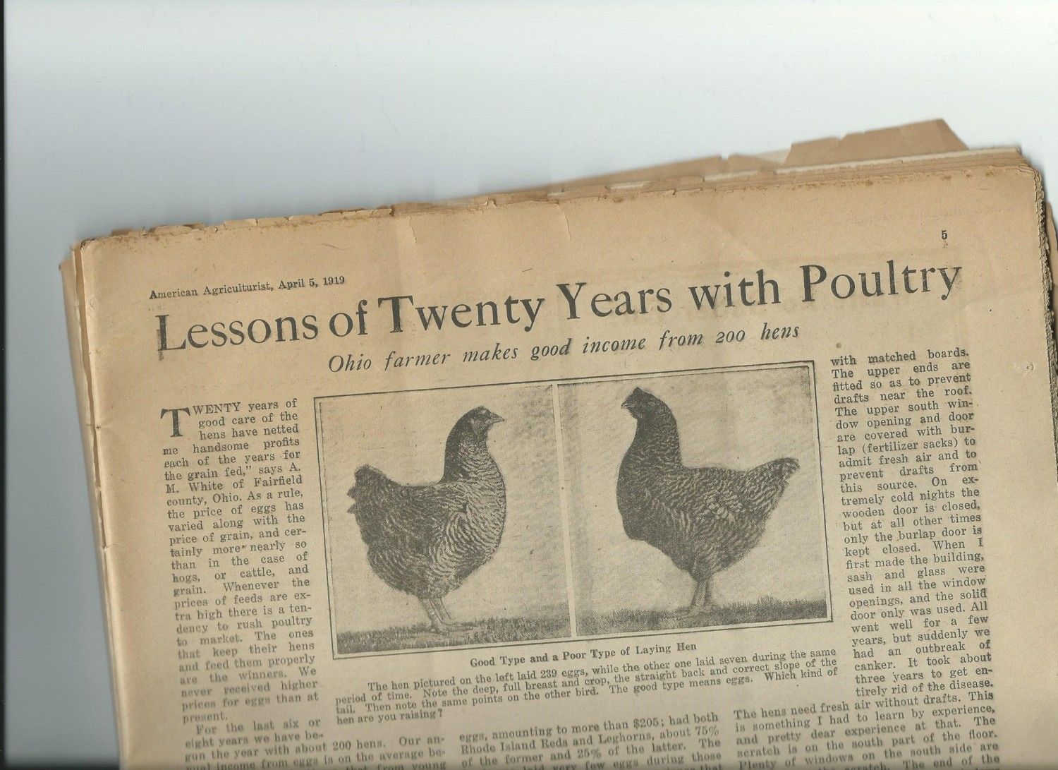 Well now I've more to share. I also have a copy of the April 1919 American Agriculturalist too. Great article on chickens. "Lessons of Twenty Years with Poultry".