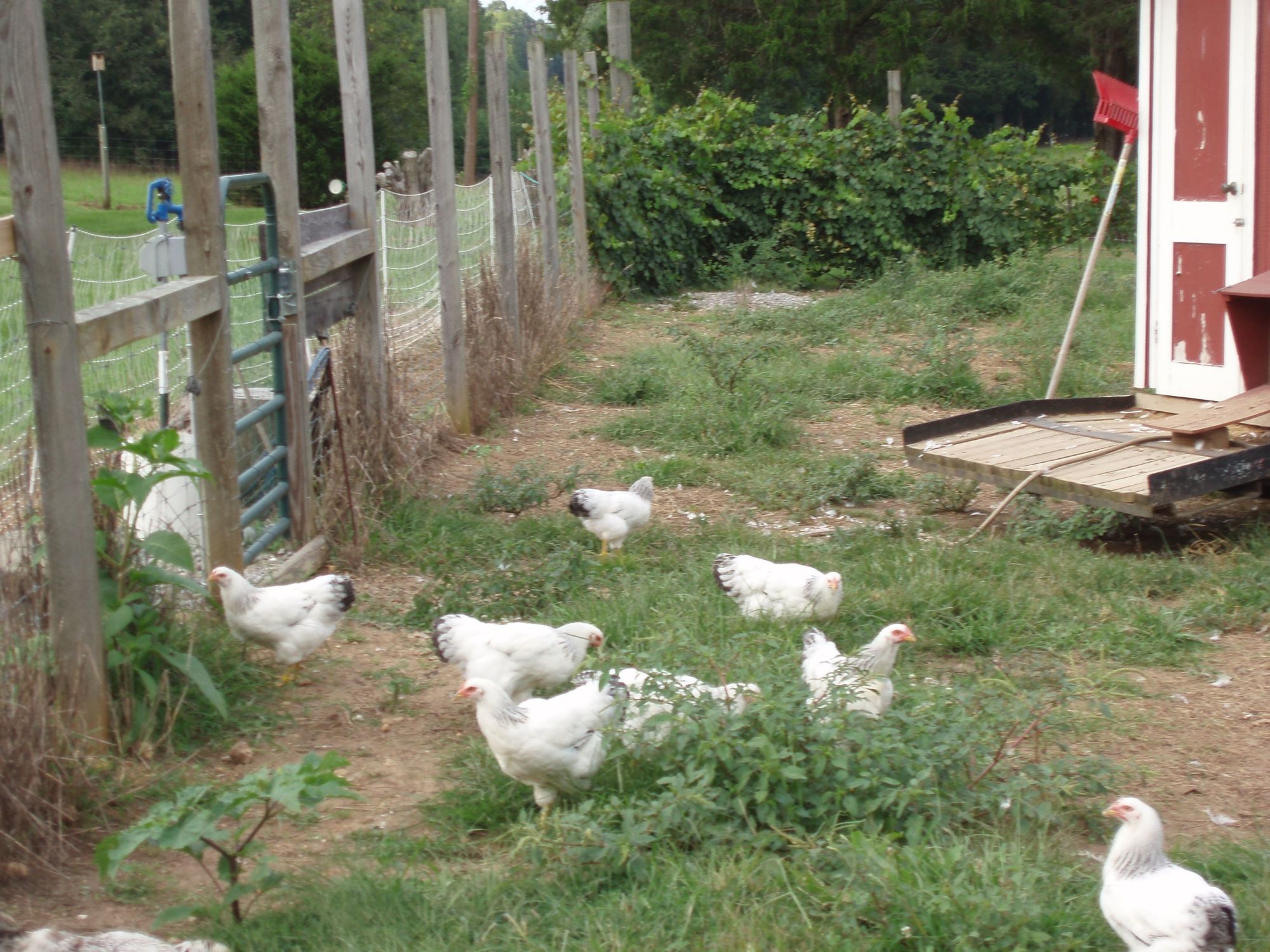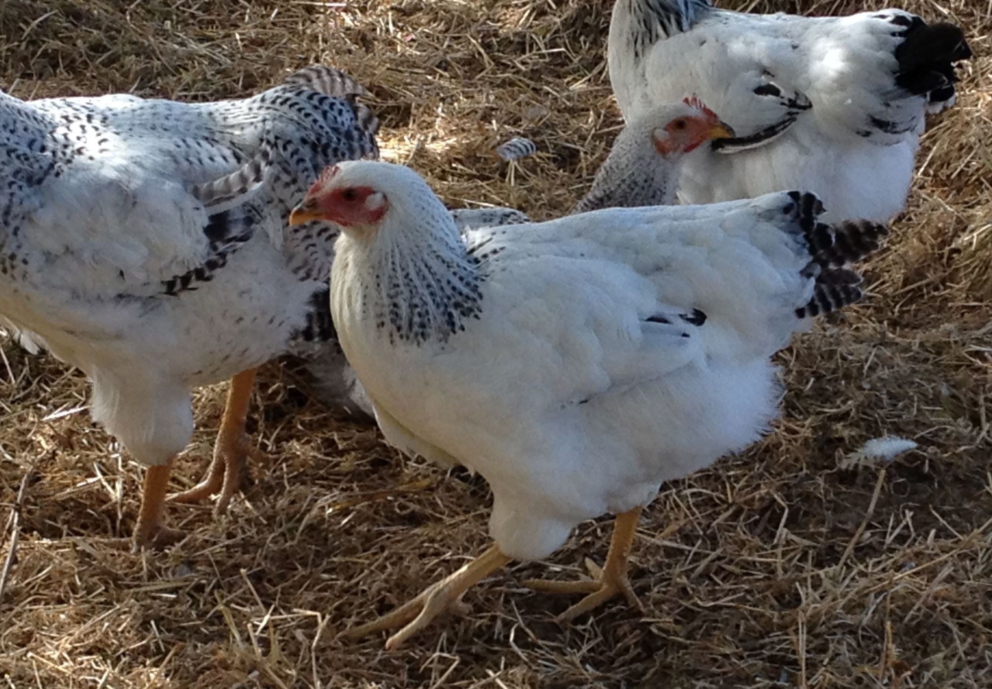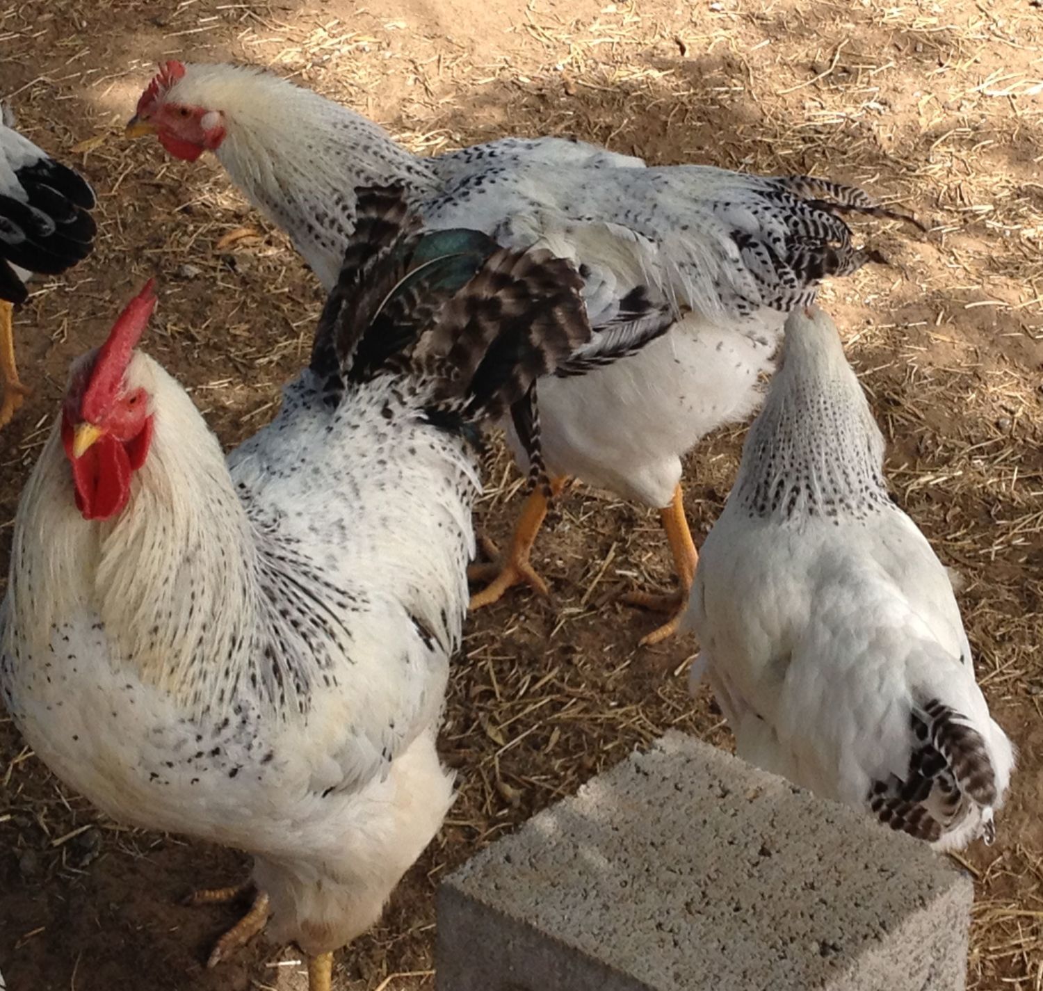 My oldest chicks are right at 19 weeks today. Here are some photos of the flock ... I could also post some photos of the original trio from this spring which showed decent tail carriage even if it showed some rattiness in the tails. When I see photos of solid fans of white-edged black feathers in Delaware tails, I get jealous.
