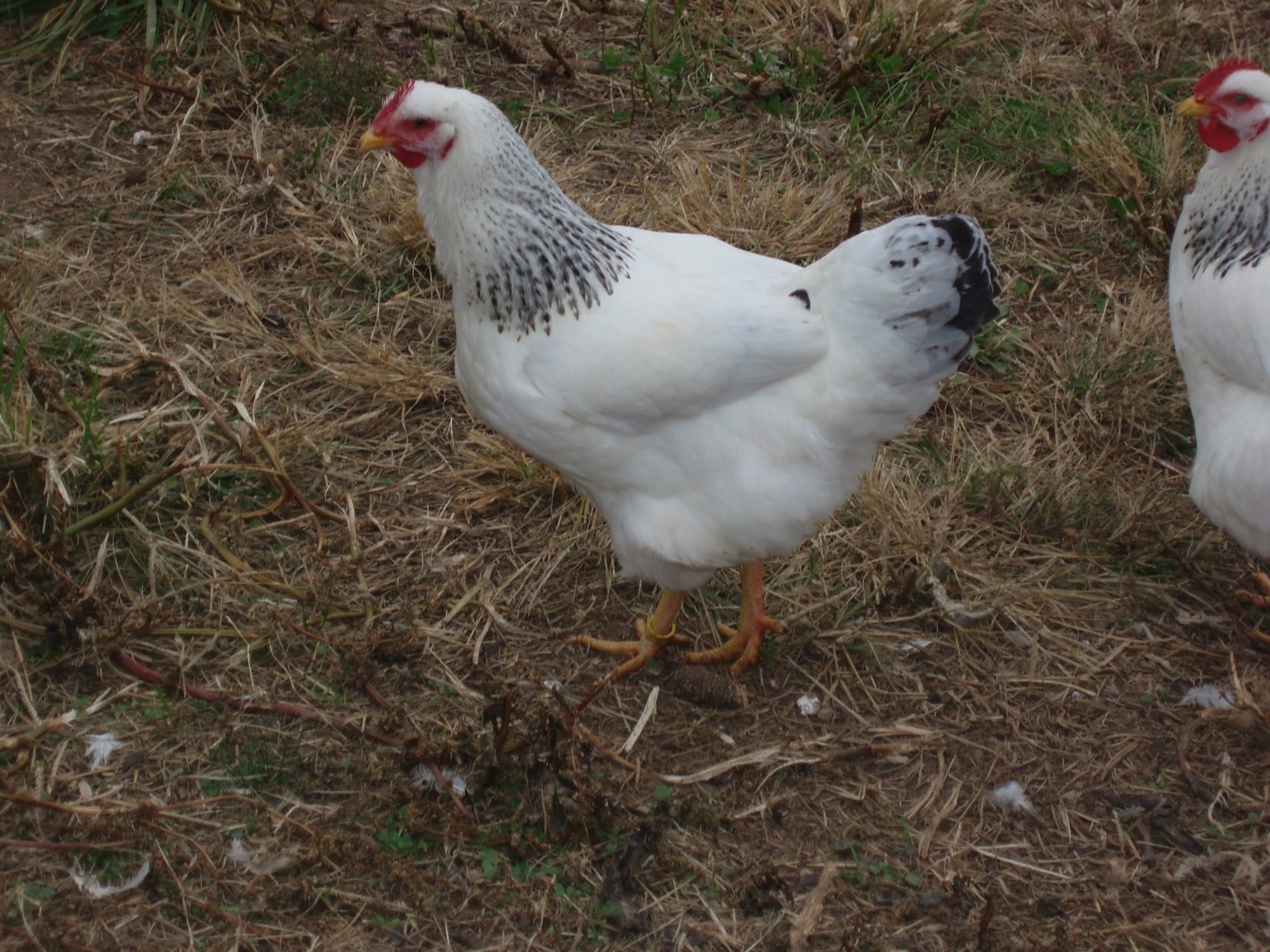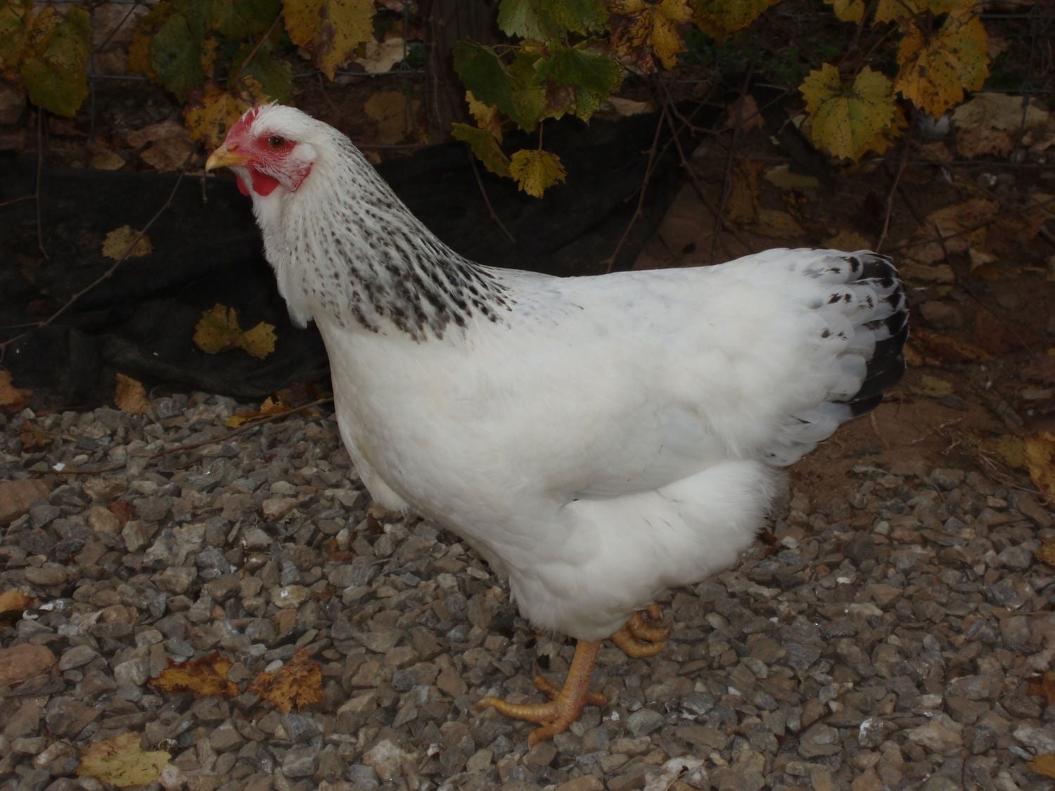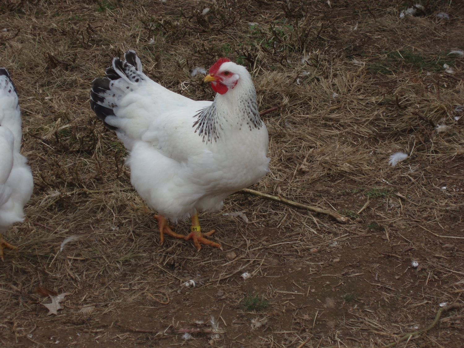 Wish I had six like the # 2 pic she is favorite so farI think this one is the most like mine in terms of body shape when mine pose nice like that. I like the distinctness of the barring in her neck. I don't think I've seen any here with white so far back into their tails. I wonder what would happen if she lifted her tail up to the 40 degree angle, if more black would show. Otherwise what barring she does have around her tail seems to be pretty close to what the SOP illustration has. I don't know that I'm seeing both barring and black in the same tail here. I seem to get either/or.