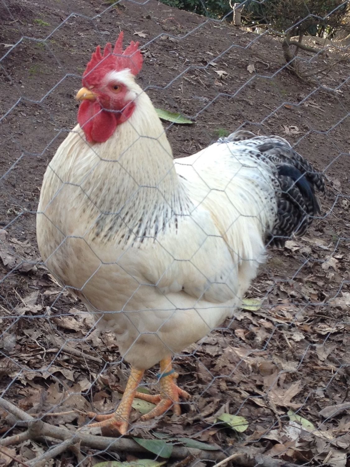 Pullets from inside the breeding pen. I pretty much just left the ones that didn't have brown feathers anywhere or have black feathers in their capes/backs. You can see the one in front has that funny folded feathering in the breast area, but she is one we tagged early as showing potential.