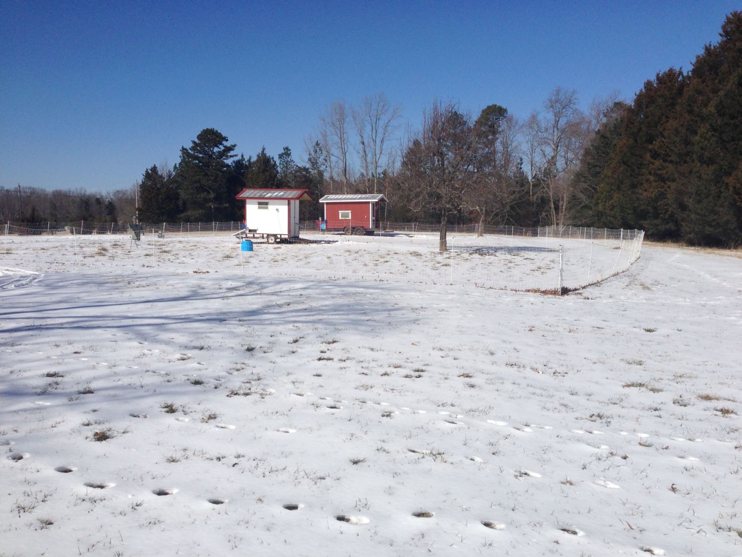 The two hens (moms) out on the free range pasture, and a few of the pullets I left in the breeding pen behind them.