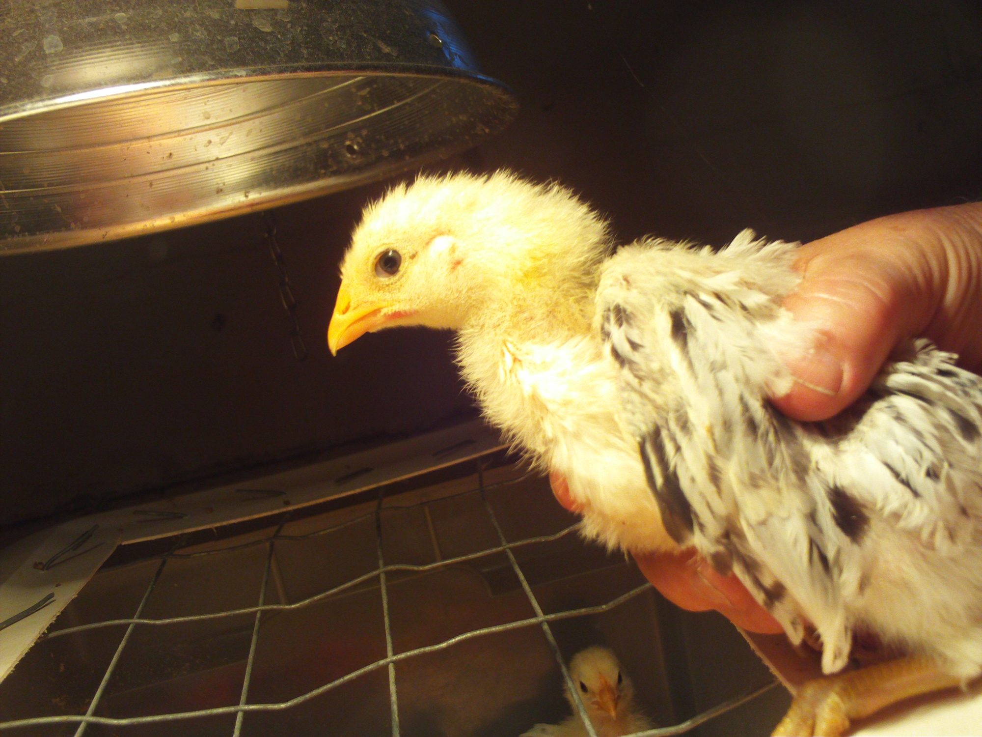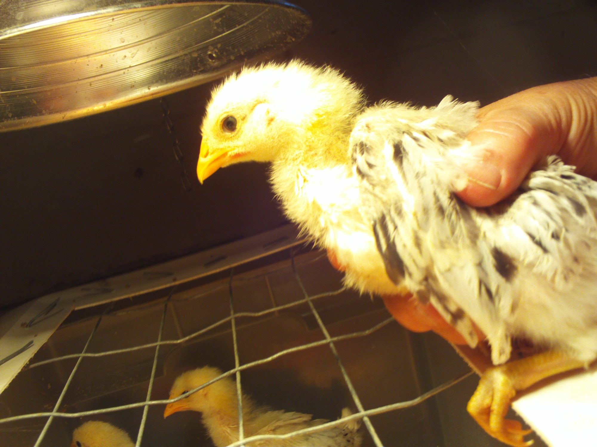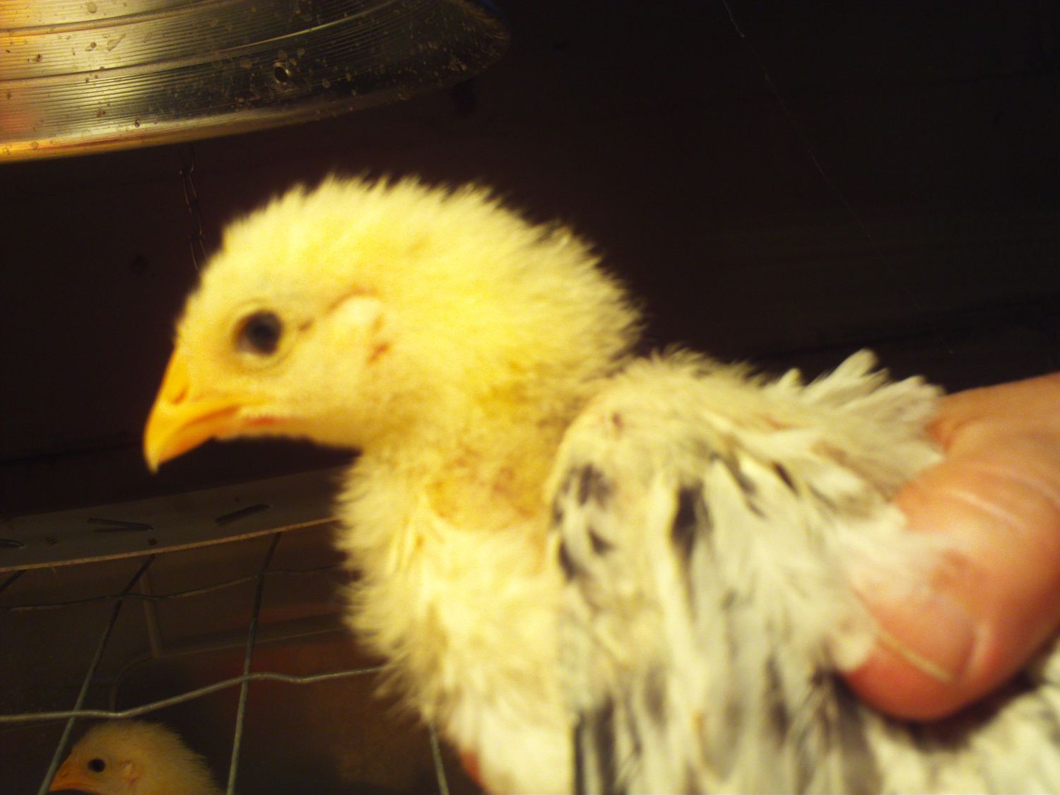 Isn't that beautifully simple?!? You can pull a bird off the roost at night and pull out a wing and zip tie the culls in your cull color, then watch them the next day for knock knees and see how true it is in your flock.