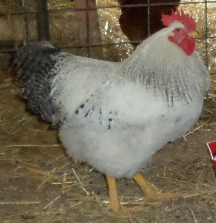 I like how PapaDel continues to fill out. He has always been VERY wide, but now I'm seeing more substance in the lower front portion of his chest, too. His color is very nice for my flock, even with the black feathers in his tail, but I'm not in love with the position of his wings. With the wing issues we've had in this line, I'm not sure I'll use him next spring. Need to pop those spurs off again.