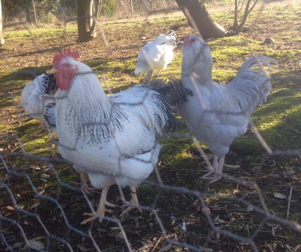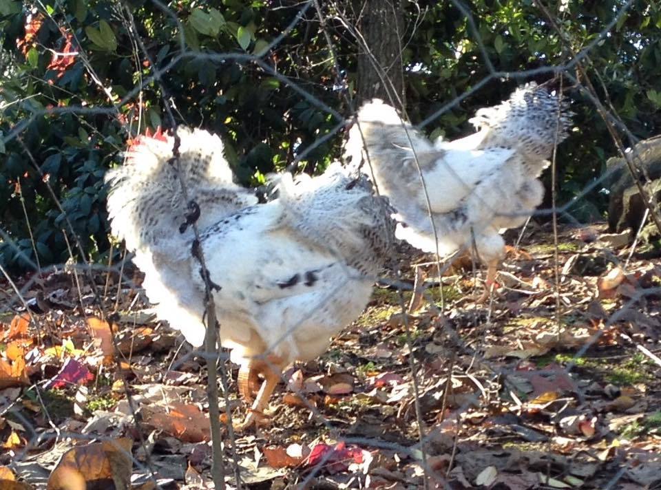 Here are a couple of the Delawares left in the Cockerel Colony ... I've got ten guys in there to grow for a while longer (though one was an obvious cull that I missed on "send them to the butcher" night). Possible hatch dates spread out from like April Fools Day to like Independence Day.