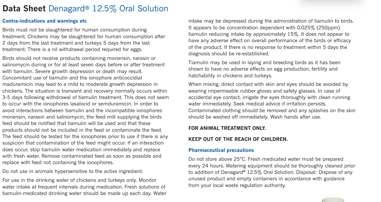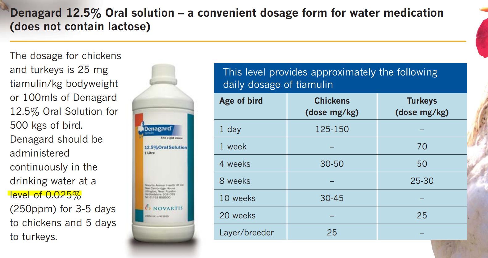 I ordered the Denegard specifically for chickens, and it came with specific instructions for chickens.
