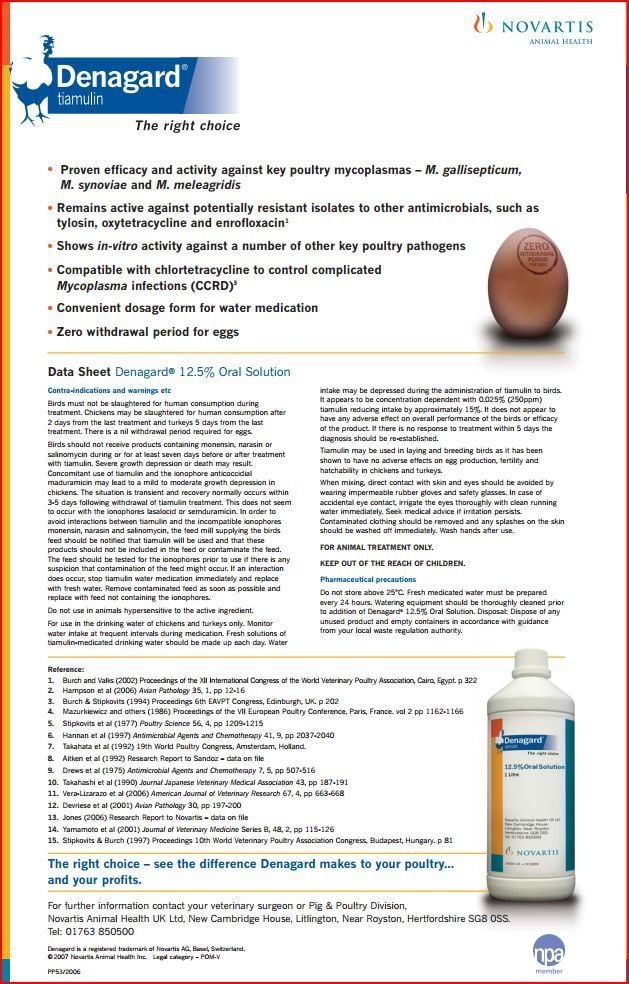 Good information here! I do wonder if it actually eliminates the Mycoplasma infection in the flock, or reduces it for a while instead. The data above doesn't give any long term information, and talking about broilers is an eight week story only. The question is, what about use in the USA? Mary