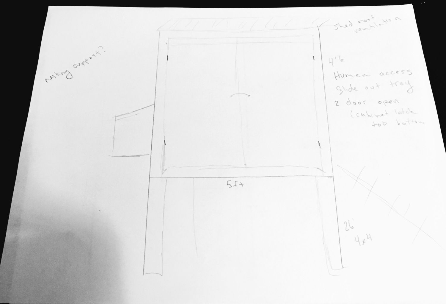Hello! I have some very rough sketches here, along with general information. I also have a list of questions, I would greatly appreciate help with. I am not much of a builder, and this is unlike anything my husband has done before, so we will both be learning...I am more of the researcher however.