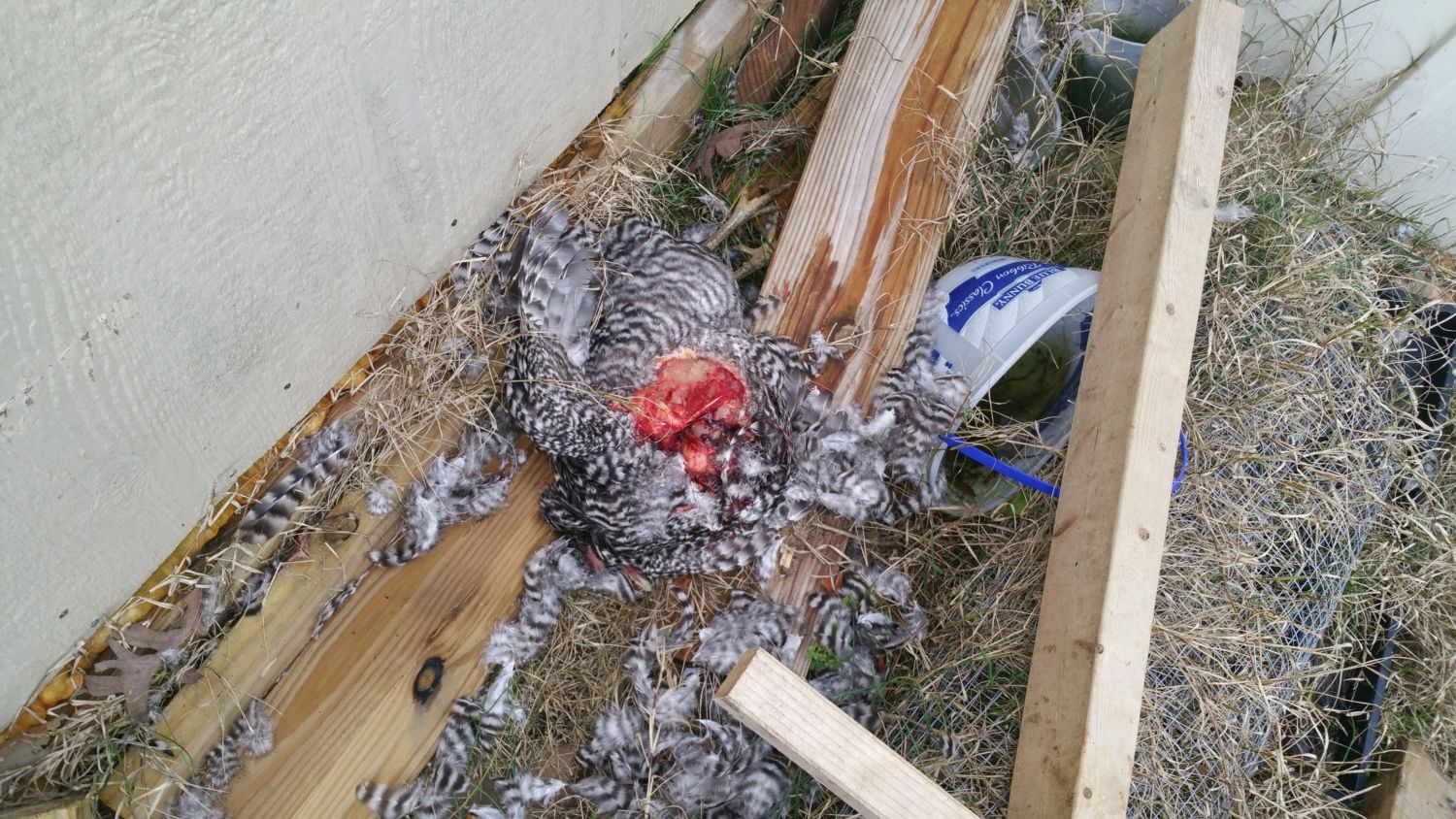 Going to make this as short and sweet as possible. I have 12 girls and let them free range during the day. This evening at 4 pm i went to lock them up and found my dominique had been killed. She was in the corner between the coop and shed. Whatever it was left her body and head intact. My other girls are fine. What did this in broad day light? Rip girl