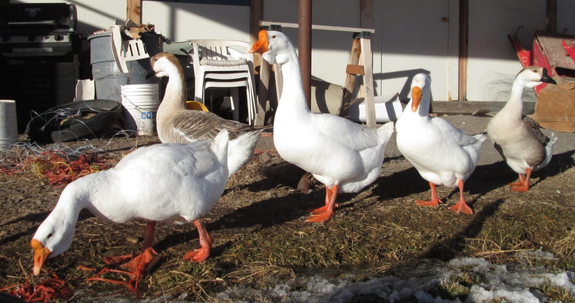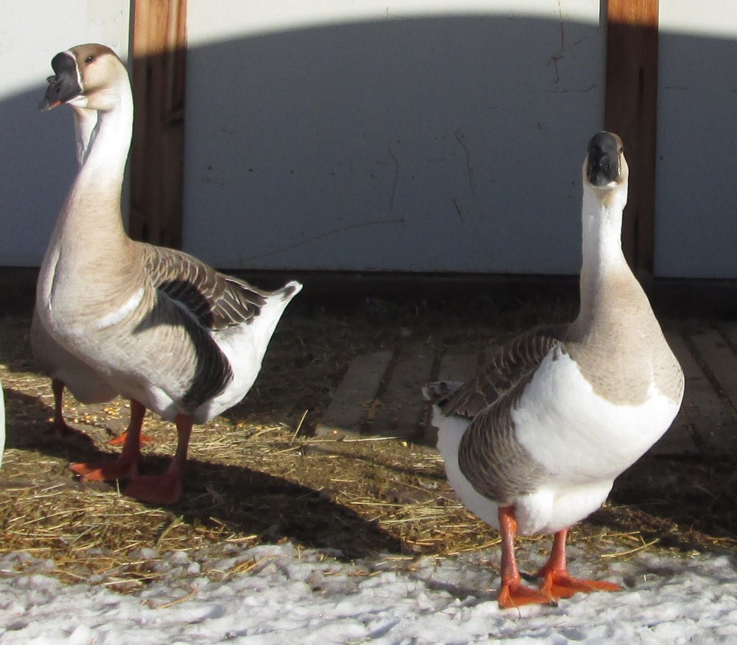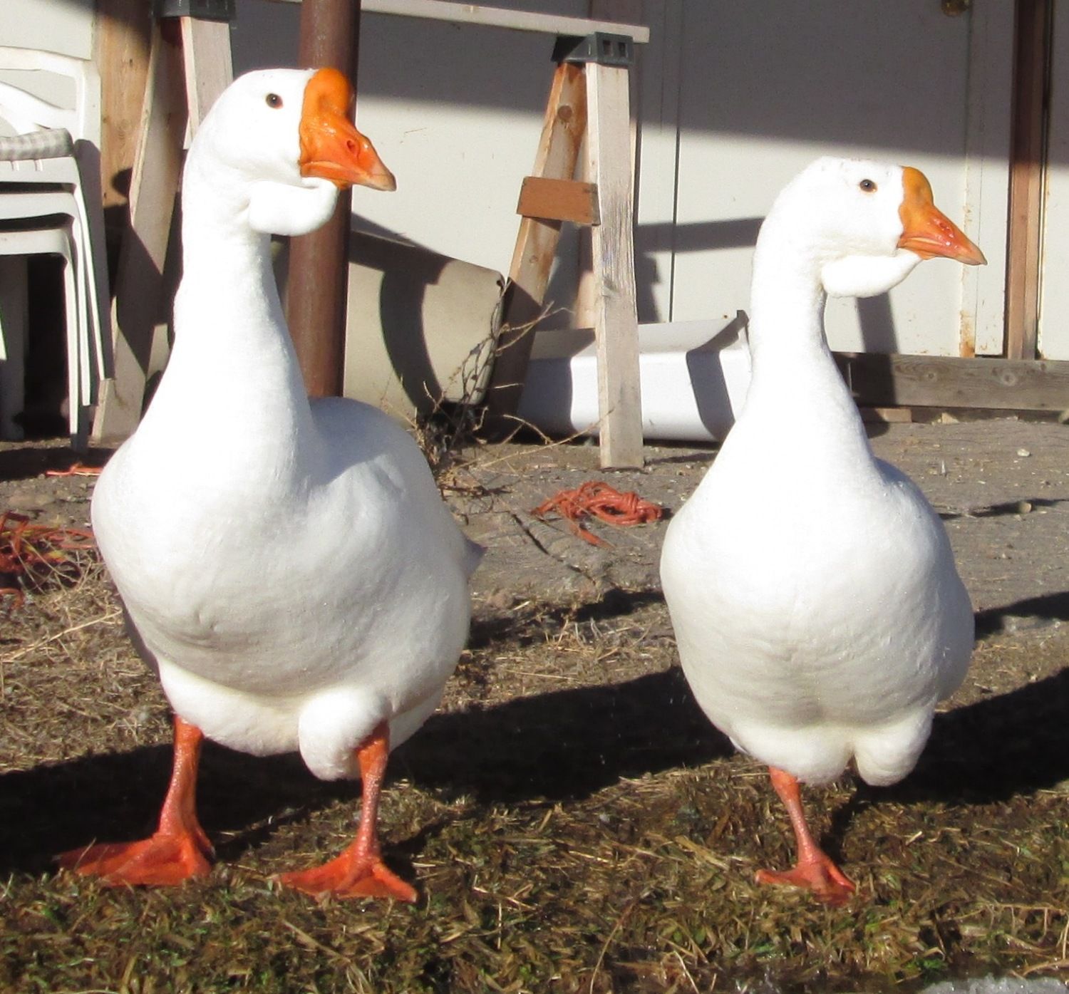 What lovely African geese. They are still babies and the hormones have not taken over yet. Even our mild natured sebastopols turn into I hate everyone and everything when breeding season rolls along.