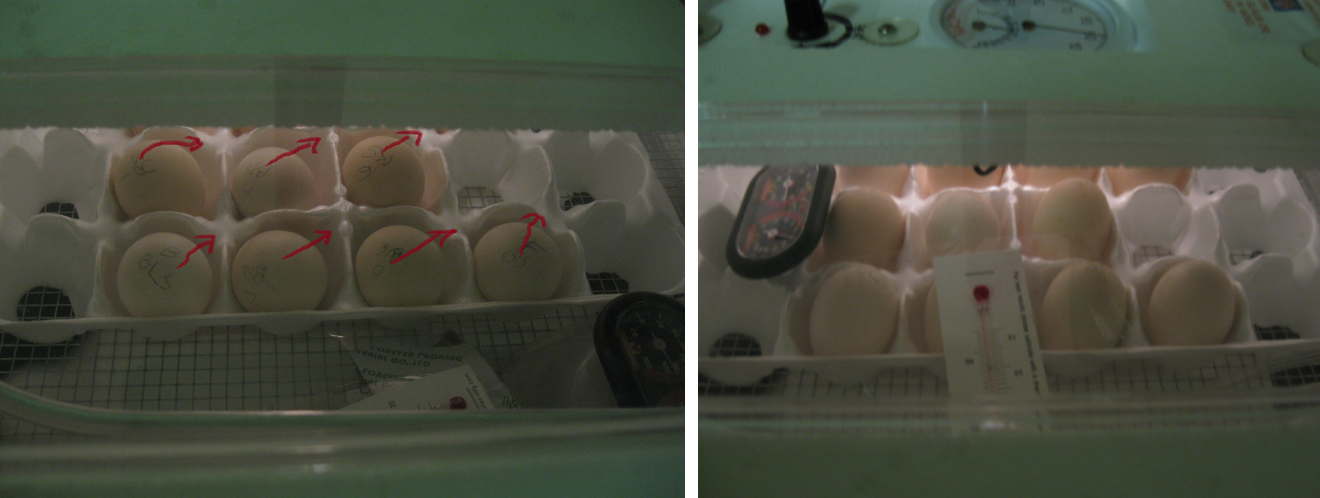 I just looked at these pics again! lol I DID move the EGGS and NOT the carton! lol I moved the thermometers and hygro around too! just happens it looks lhe like the pic is flopped. click to enlarge... this is where I am at..