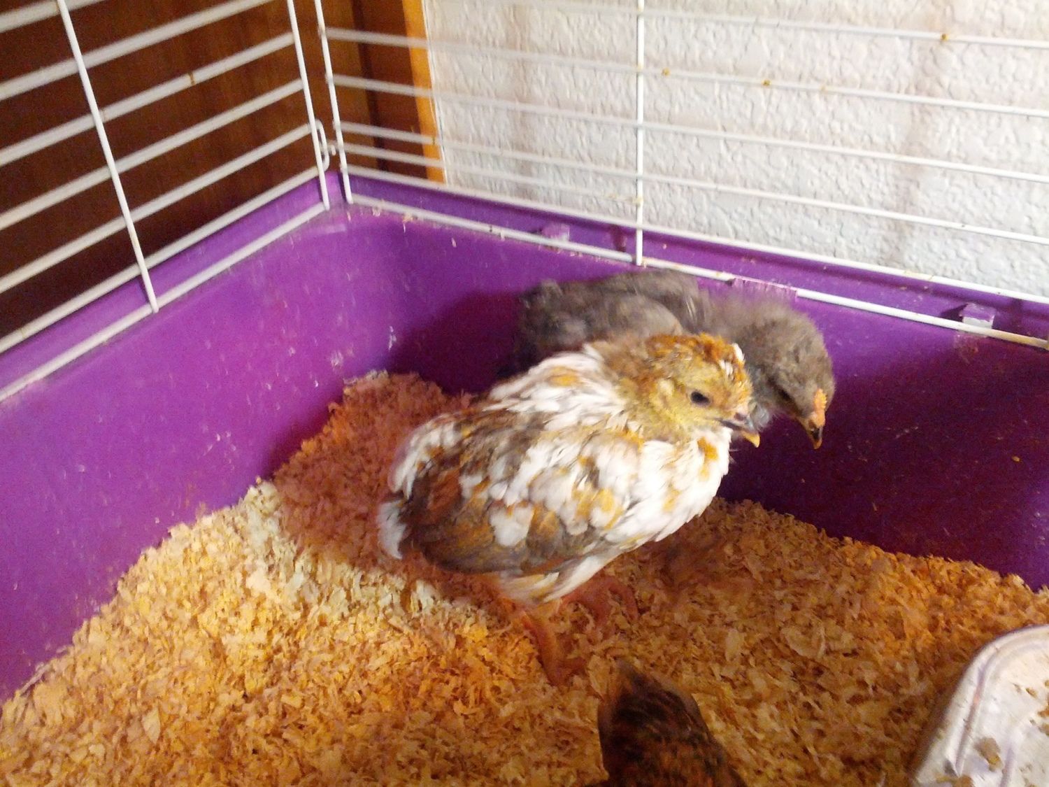 Curly and a grey ?SFH?. The grey one has a weird comb... it almost looks like three combs.
