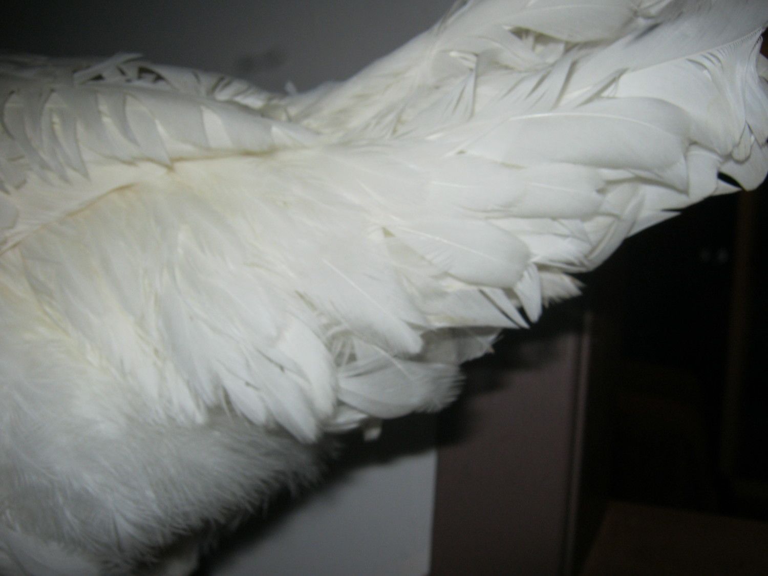 You can see that they kind of hang below her tail kind of under the tips of her wings.