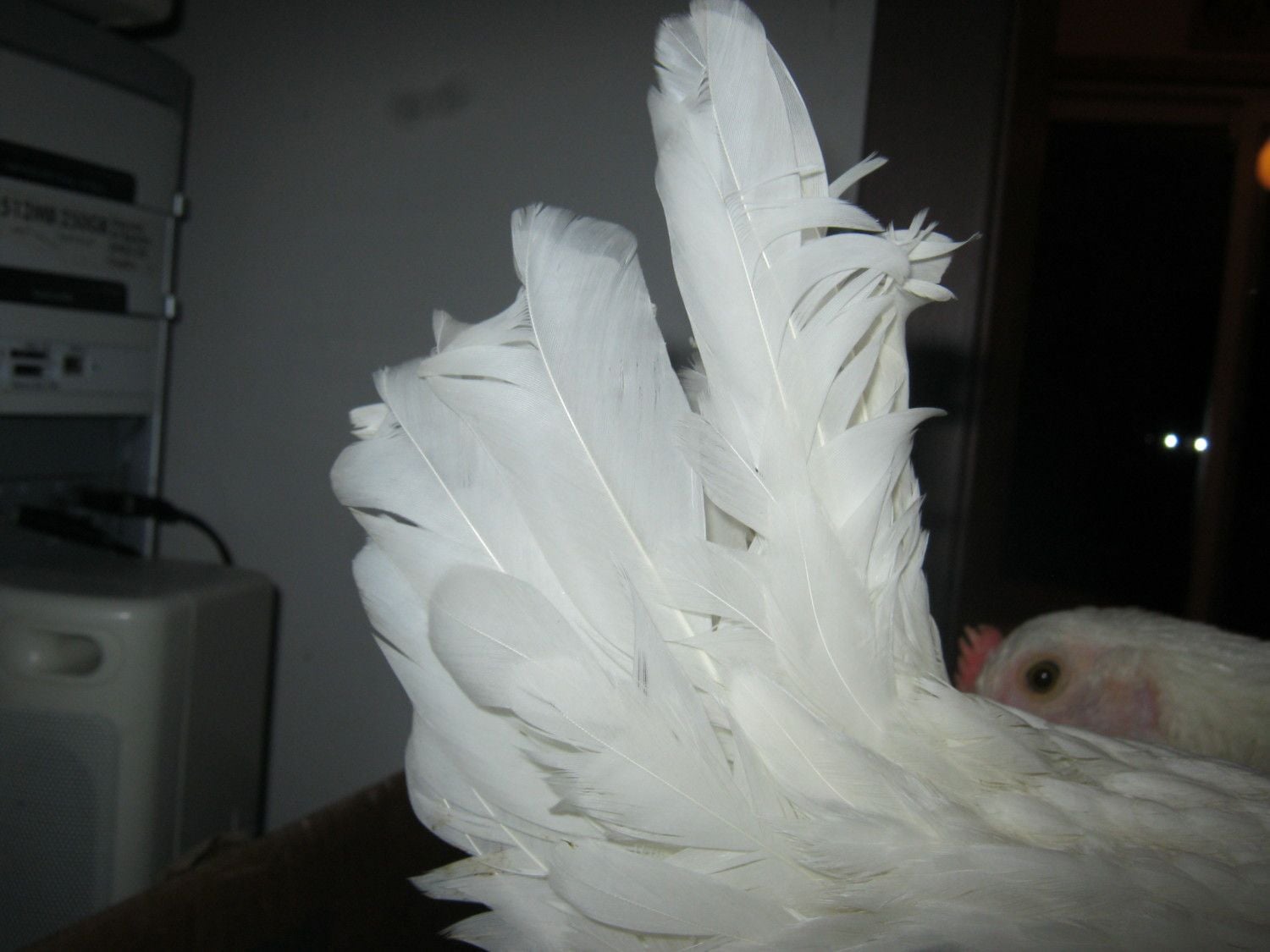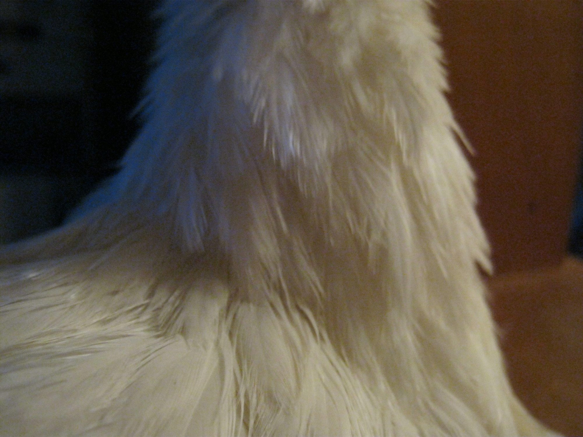 I have pictures... I think Hope is a boy. She (or should I say "he") Has saddle feathers! Maybe they are just long tail feathers, but I don't think that is what they are...