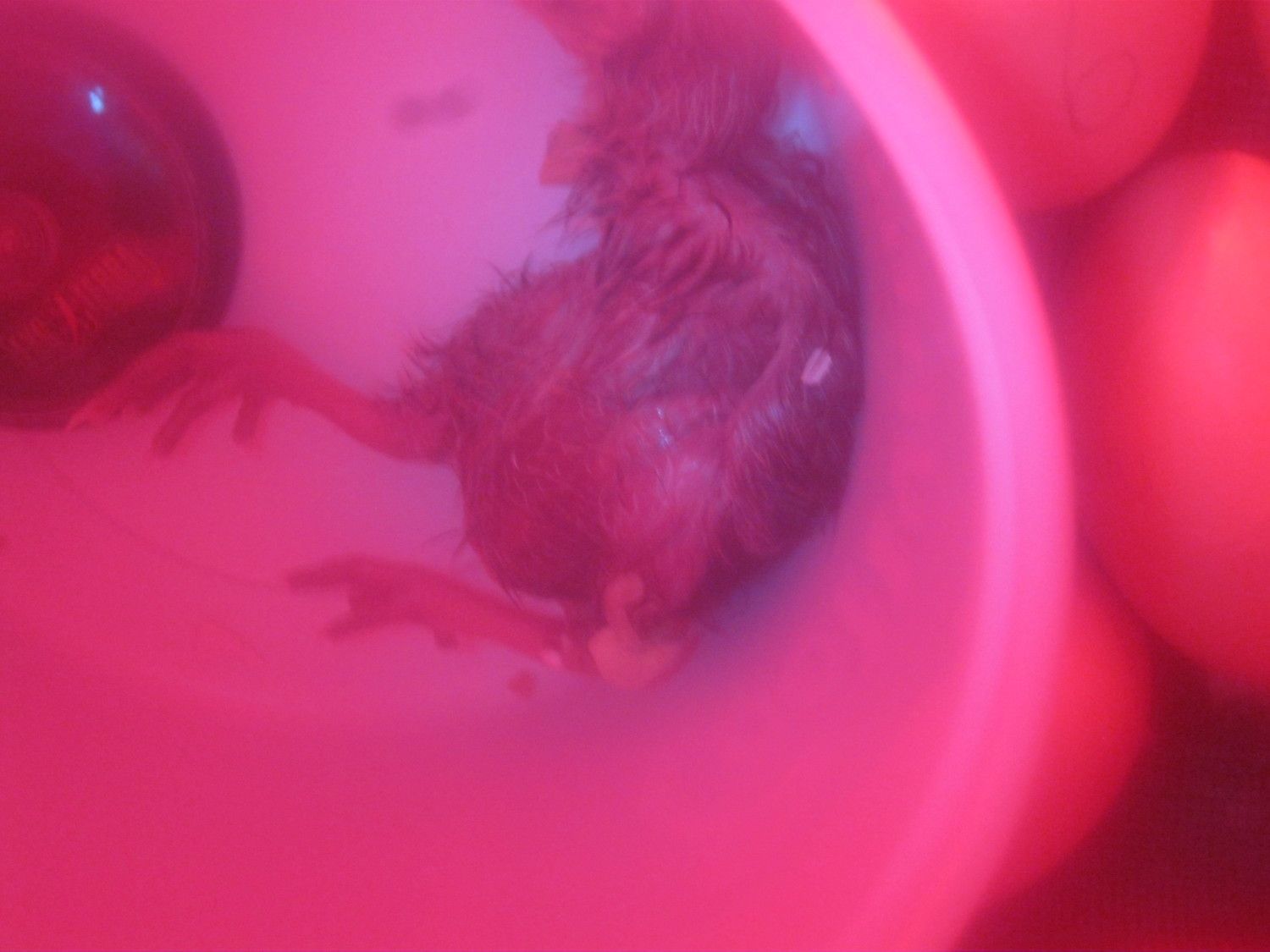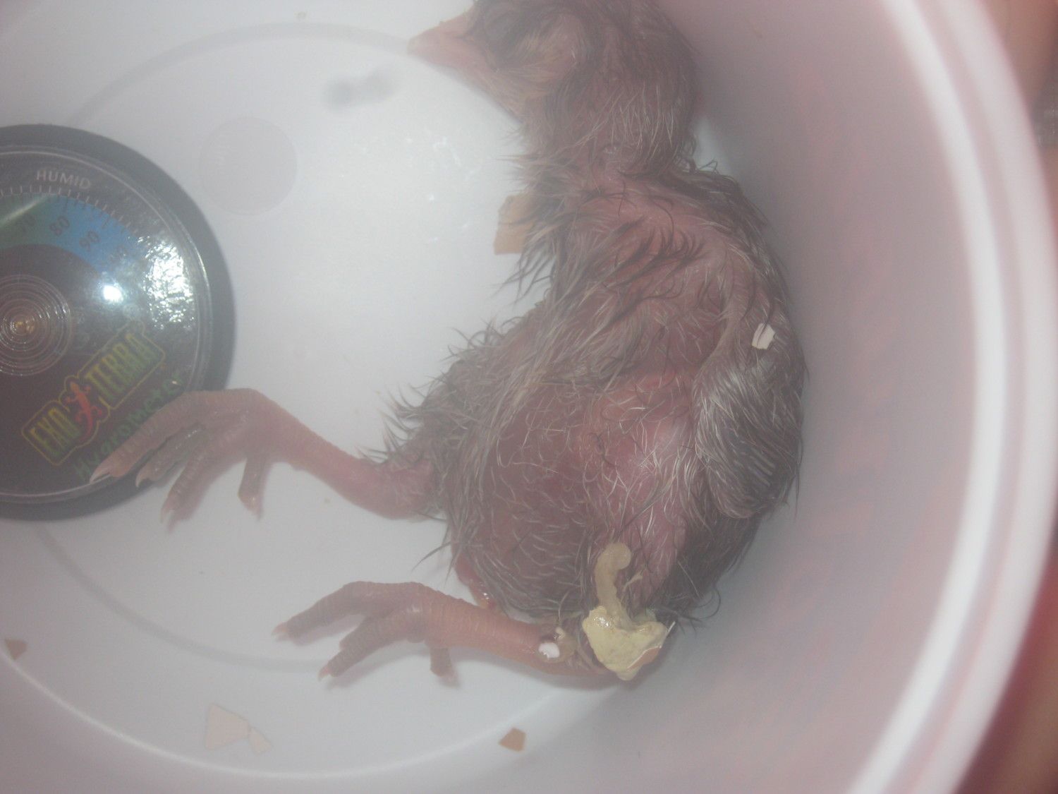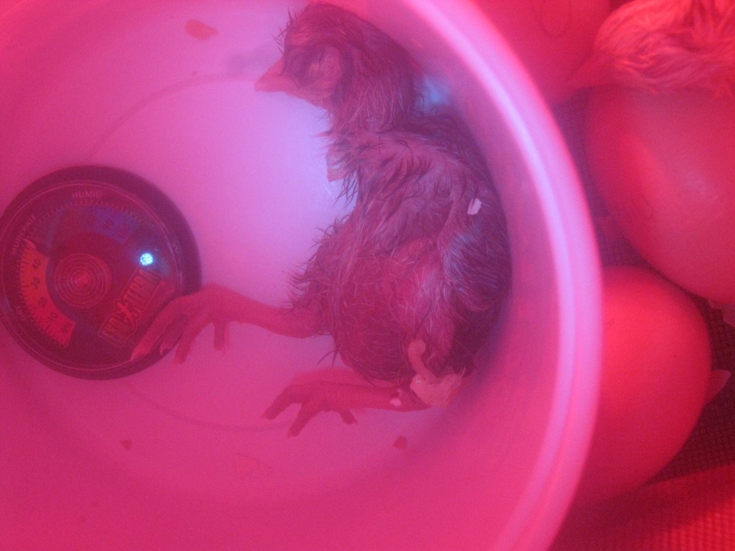 I don't know what... Antiseptic cream? Is there a special one for chicks? or..... ???? There is a tiny red ball thing. It is so small she has to be positioned right in order for you to be able to see it. It is all red.....Can you post a pic? Is it round her vent or her navel? Put some antiseptic cream on it and try and keep her separate from the others and on a clean paper towel. Oh, scrub your hands really clean before touching her!