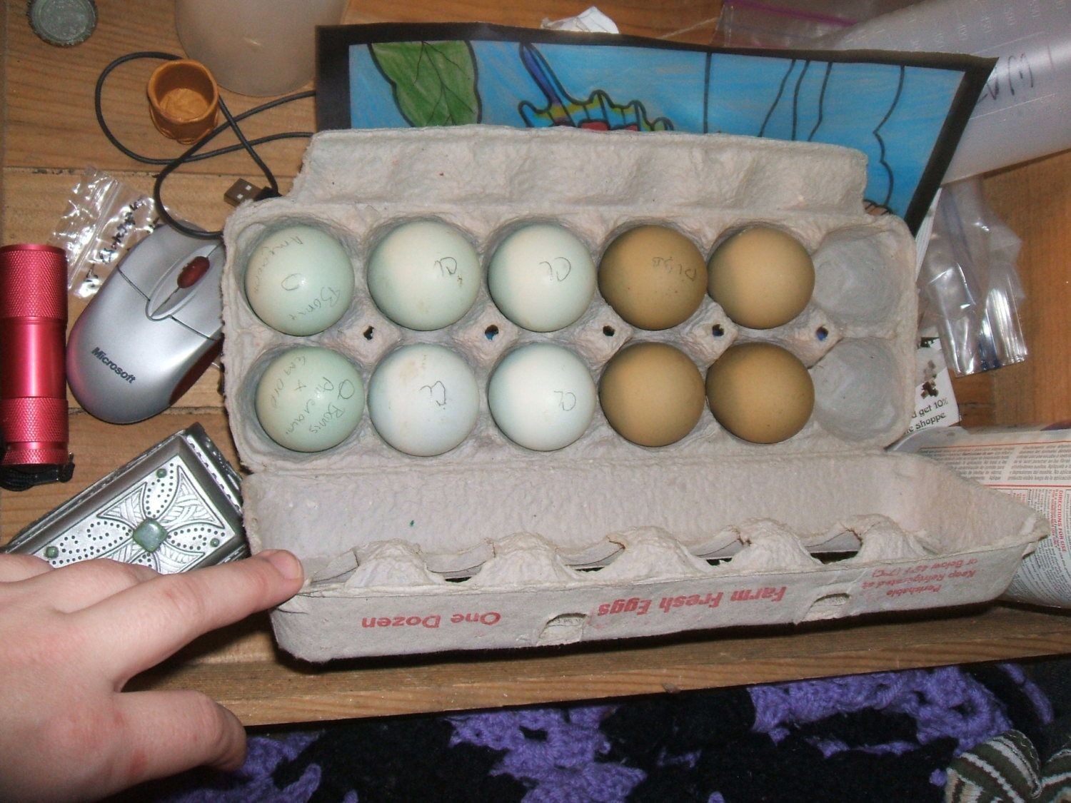 Sally, so it was my husband that thought he saw the dark spot in some of my runners eggs, I just candled them all and he was seeing were the veins like connect. My weirdo air cell shipped egg is the one I've been seeing the dark spot growing for the past week but I realized I told u the wrong end, it's at the fat end right by the duckling. Now that its grown and the baby was really moving today I could see the spot moves with the duckling. It almost looks like a feather because it's long now and almost looks connected to him now too as I see it move. I'm being very paranoid about my uno egg since it's the only one that developed, my $30 dollar egg!