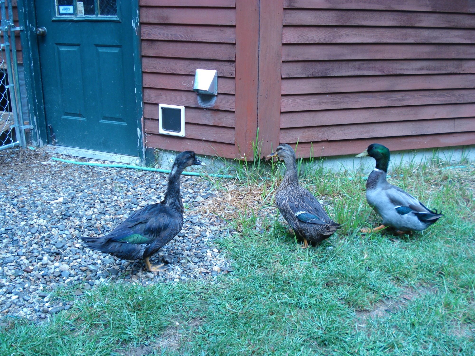 He seems to like hanging around the other ducks so I hope he doesn't go anywhere! Those are Rouens...