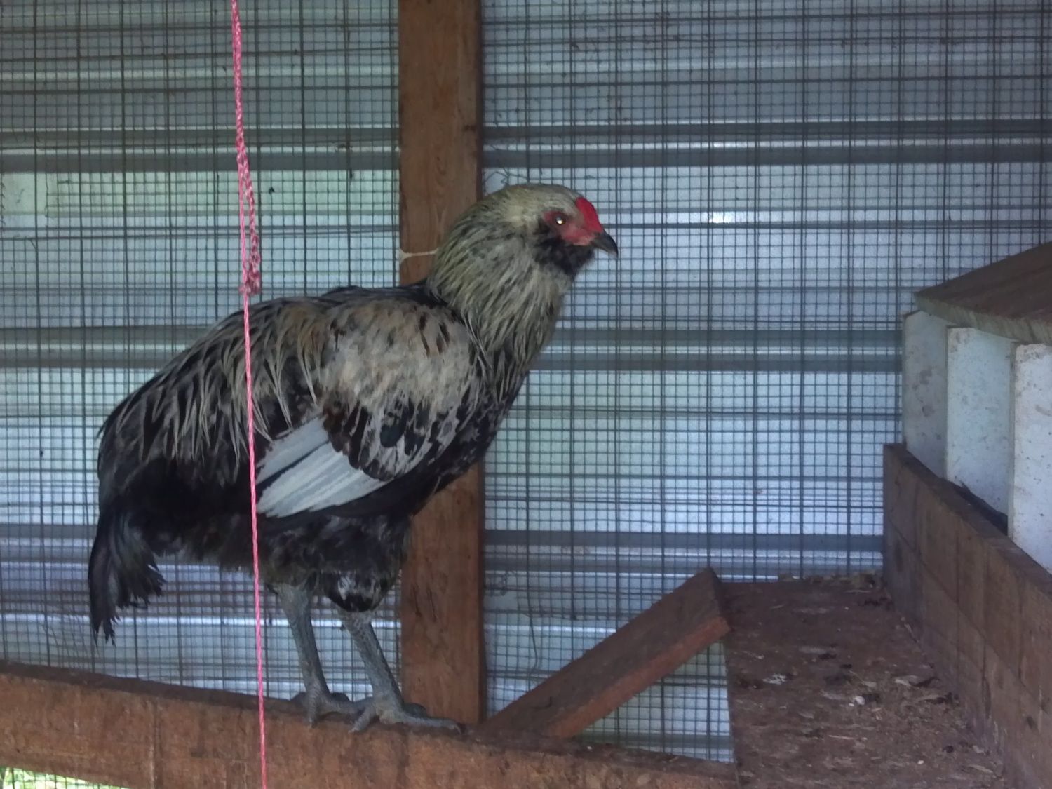 Also, he seems a bit odd... I have 6 hen's and they are very active (chase him away now). He seems to move differently then the hens, almost like a stork... When he pecks the ground sometimes even twists his head almost upside down... And he seems to move slowly and maliciously. I am new to raising chickens, just seems odd...