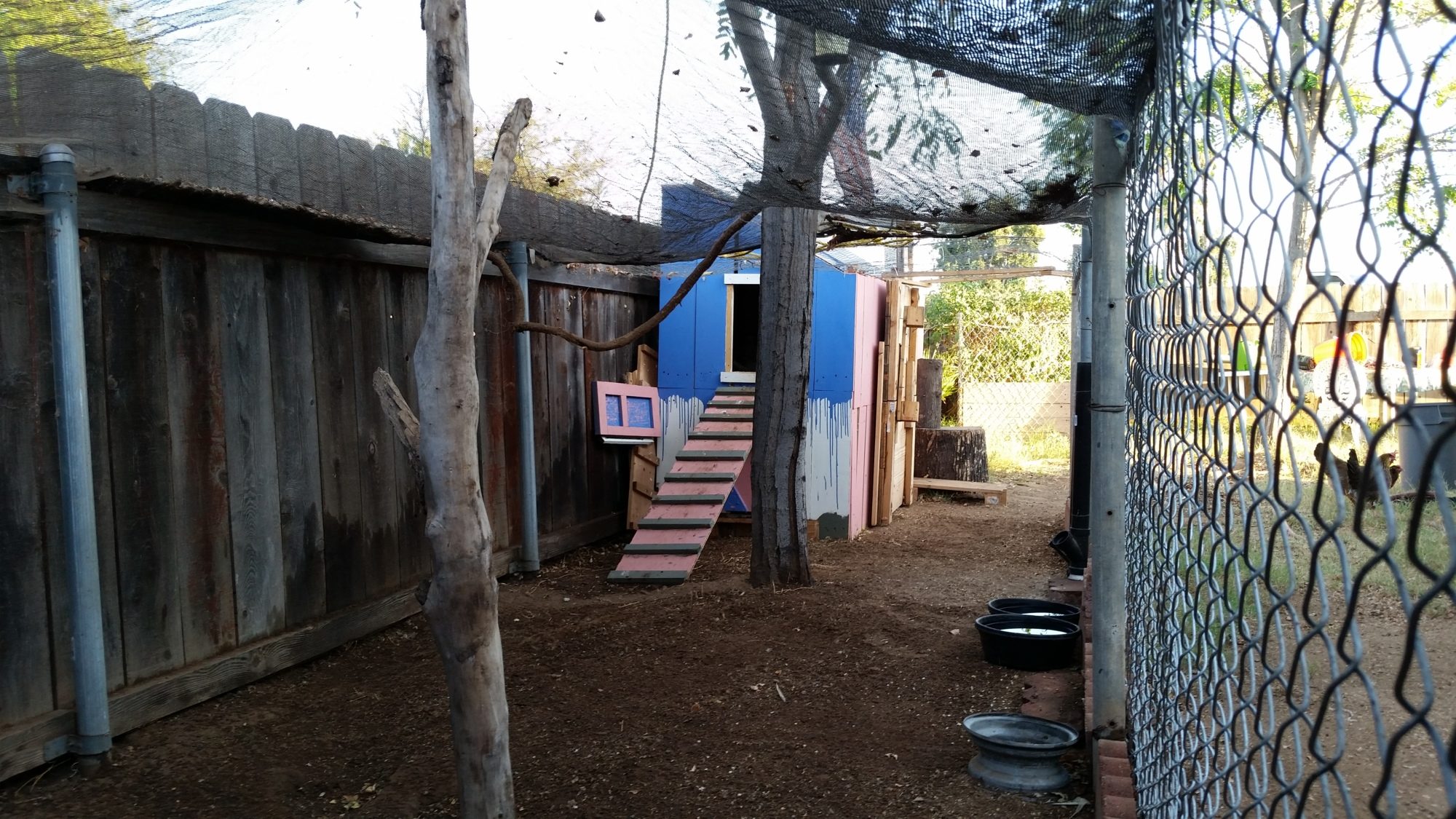 This is the inside of my little coop. It has linoleum on the bottom with the sand on top. I spread DE for the smell and to kill mites & other unmentionables.