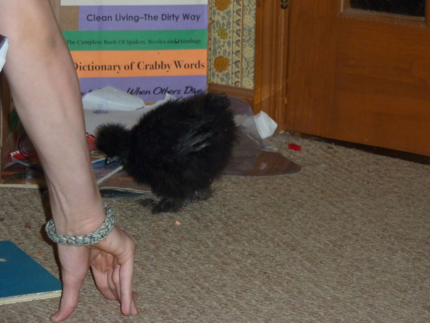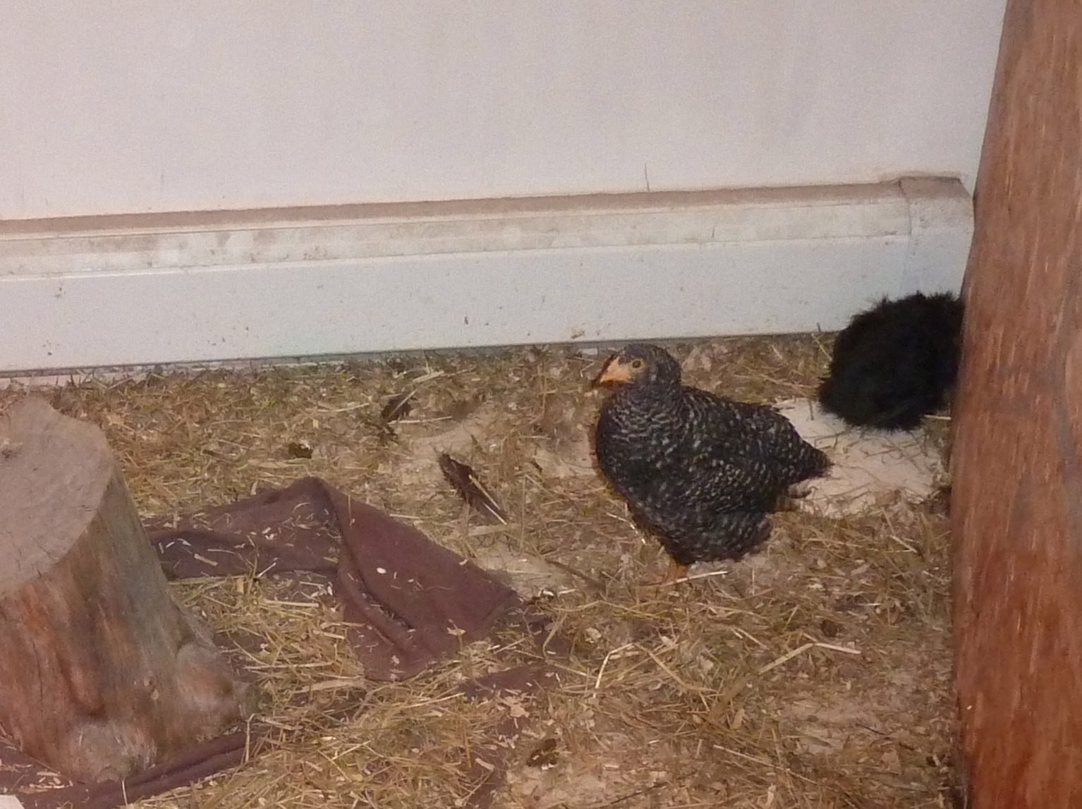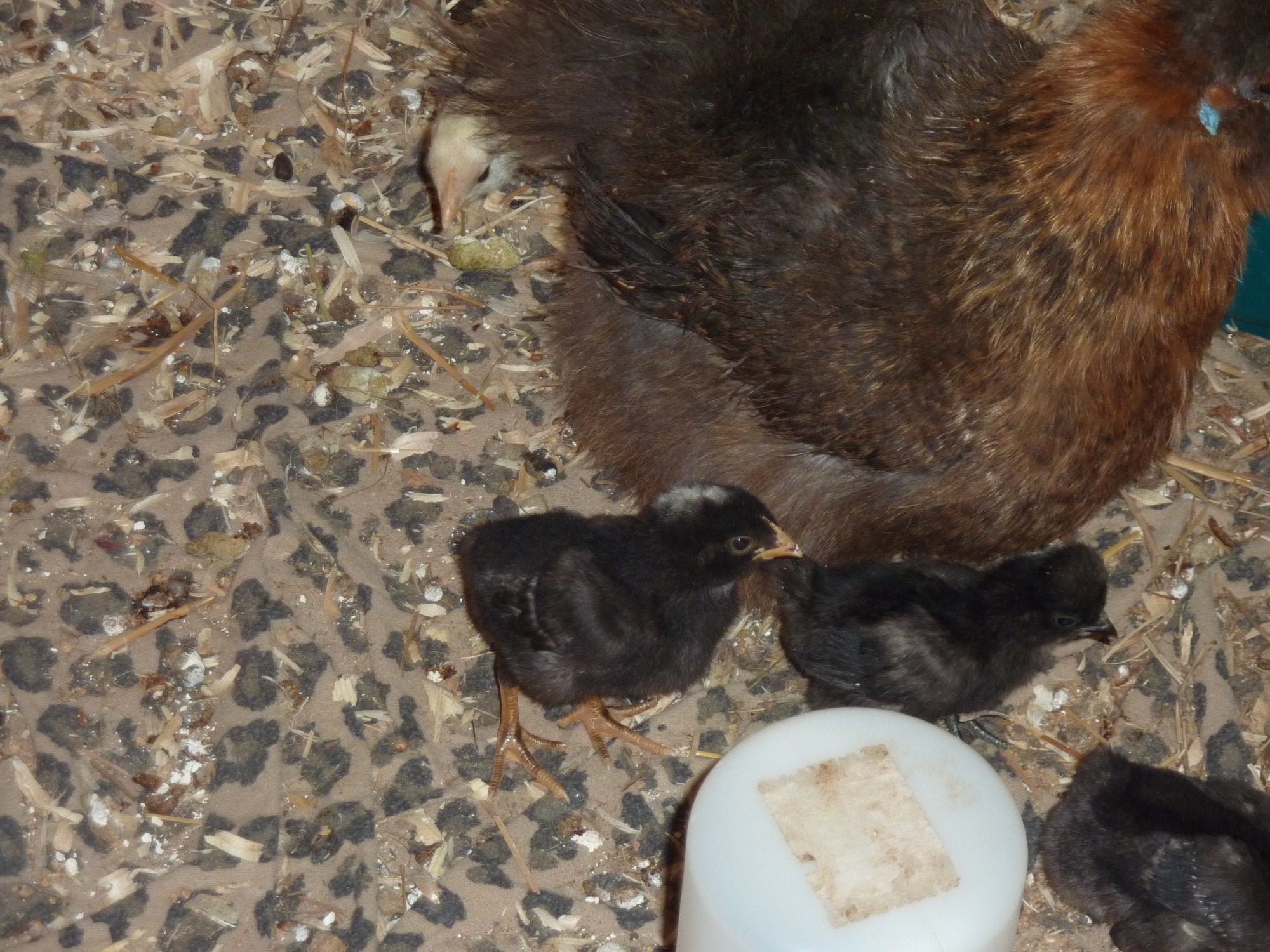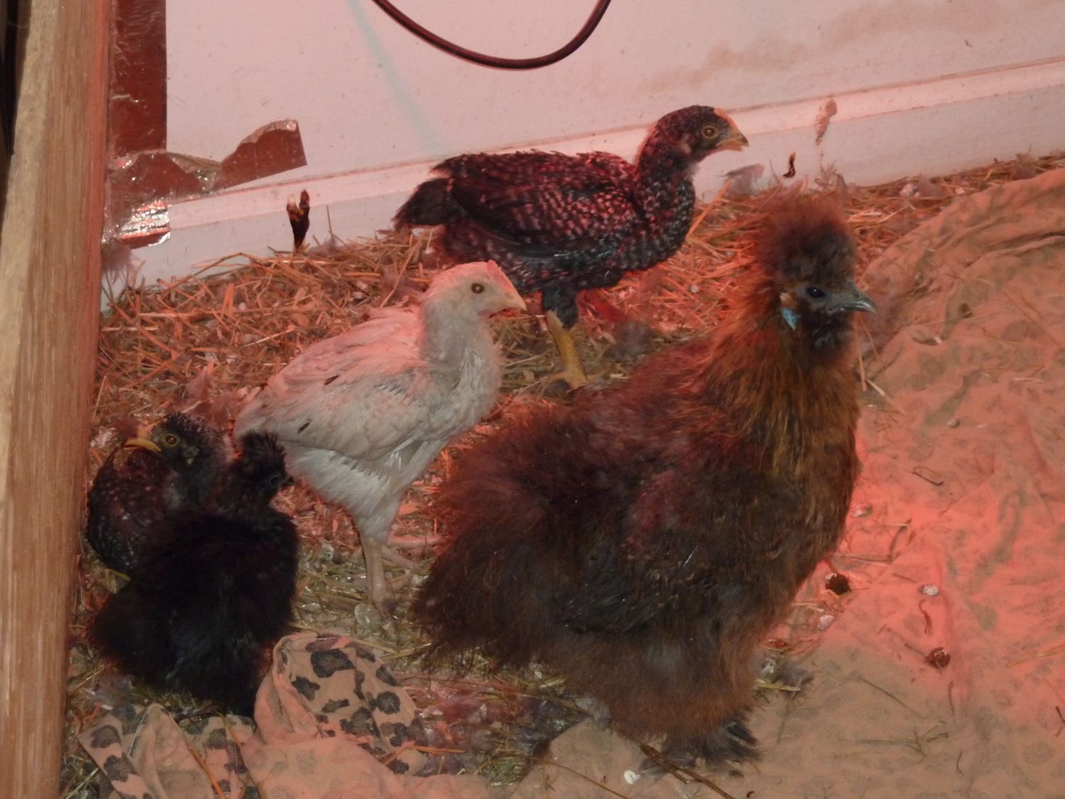 We had just gotten new chicks and I let Amber rest in the pen with them so she could be around others of her kind. She didn't stay with the, though, as chicks tend to be rough with anyone who is weak.