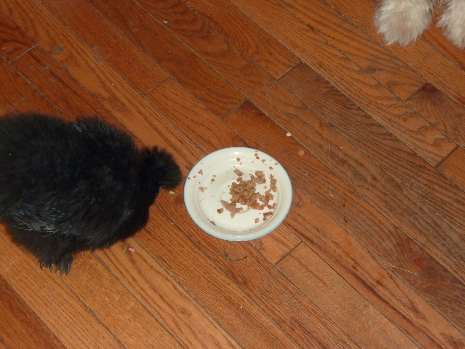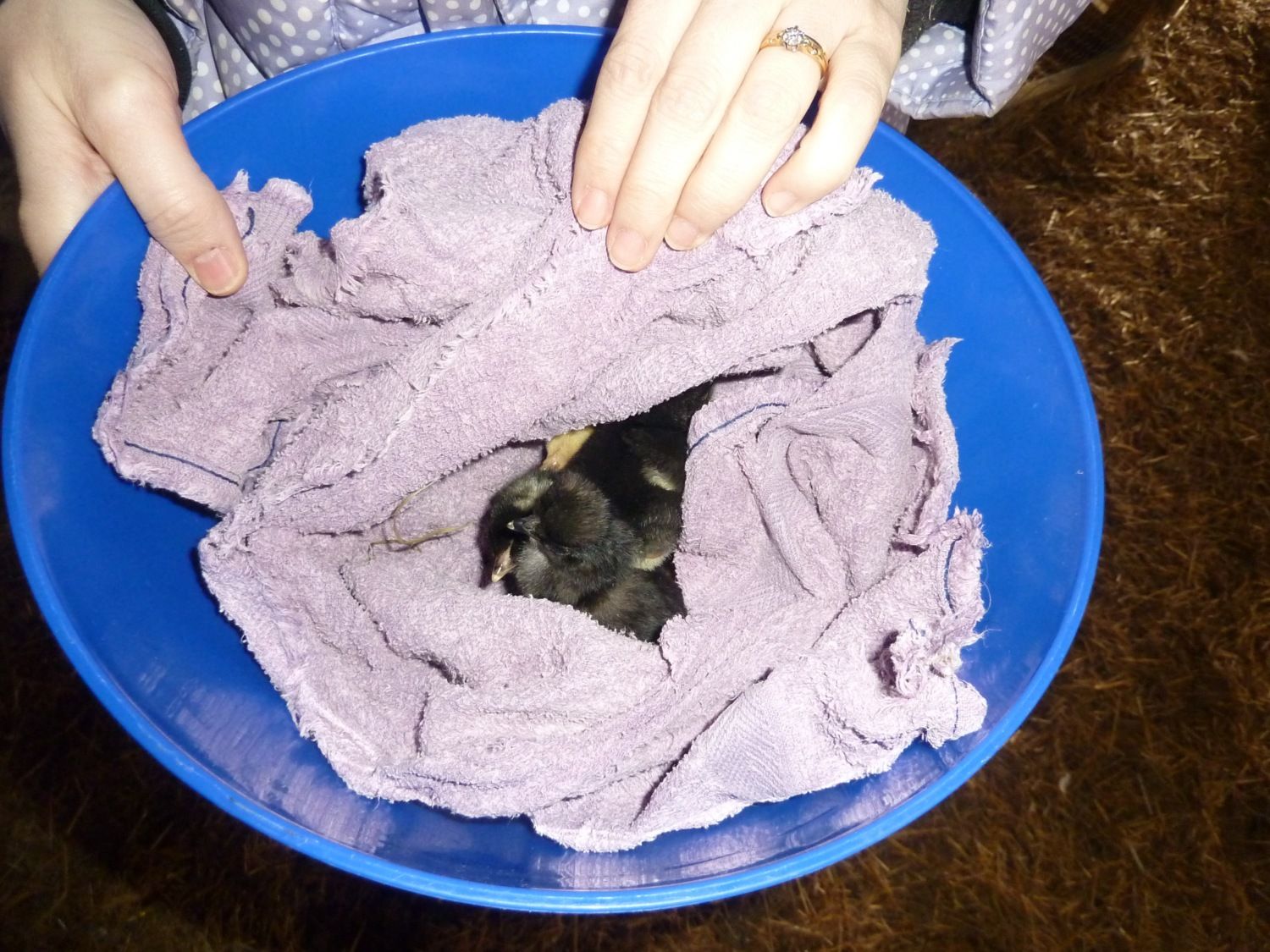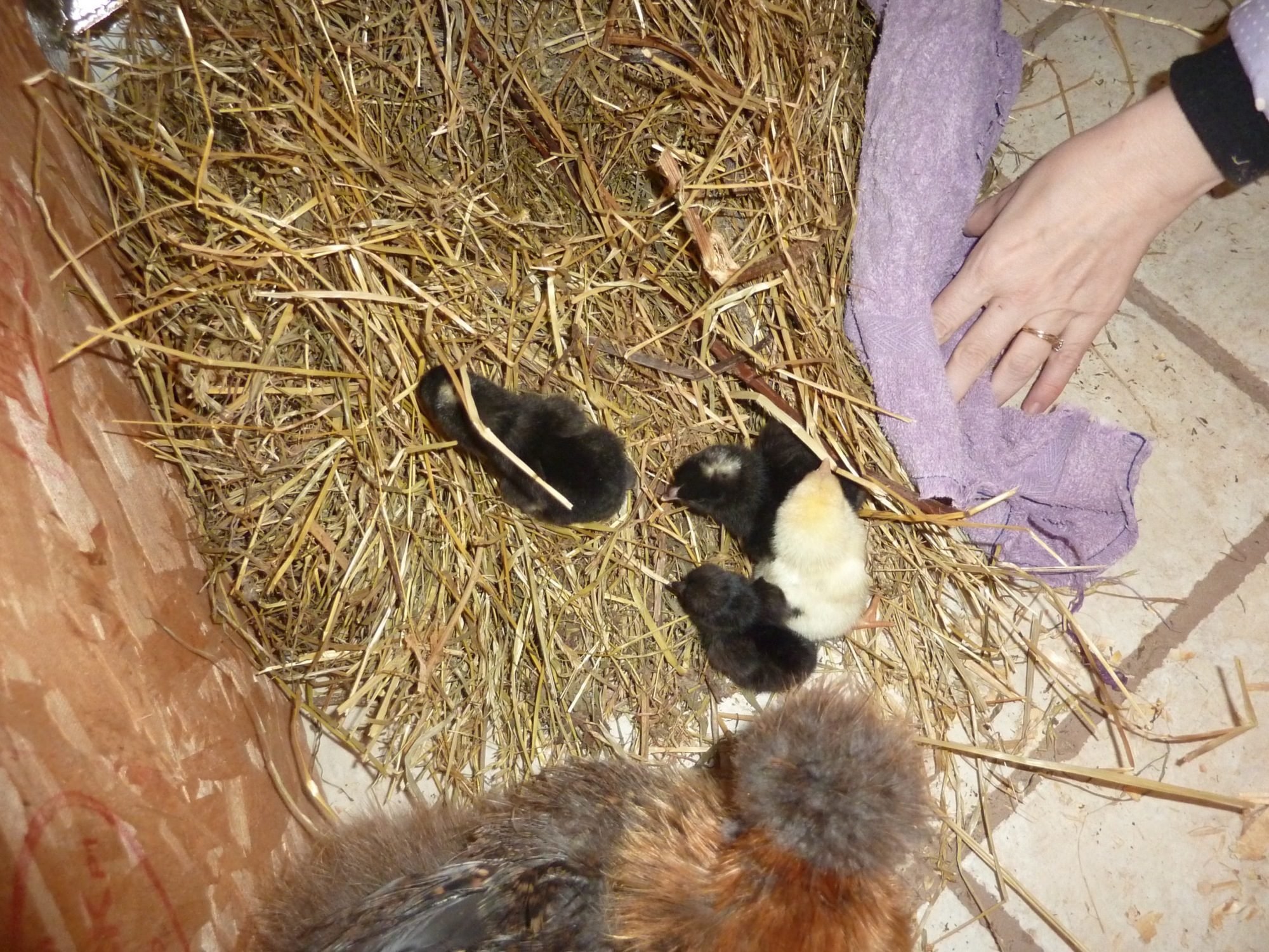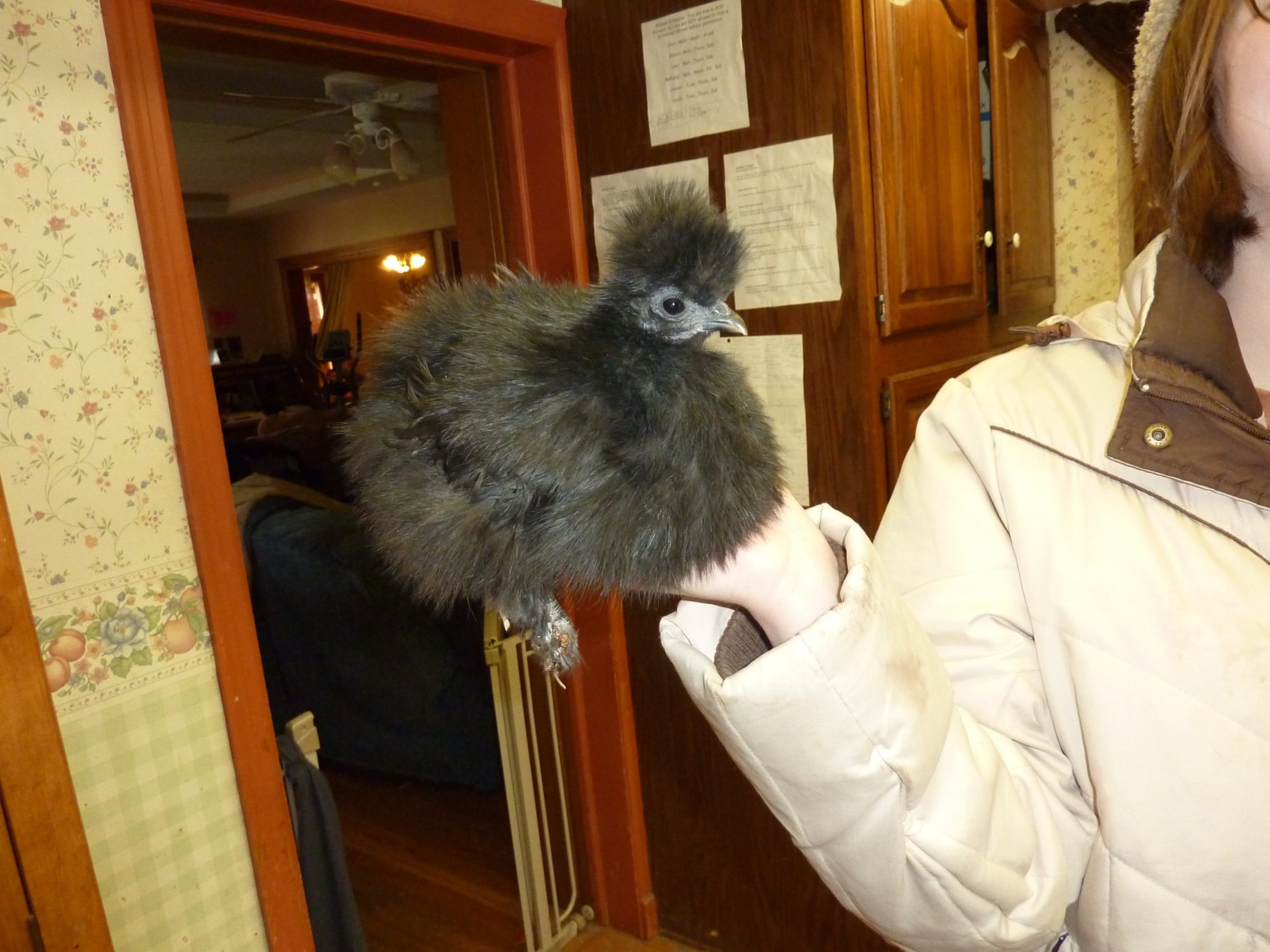 We had just gotten new chicks and I let Amber rest in the pen with them so she could be around others of her kind. She didn't stay with the, though, as chicks tend to be rough with anyone who is weak.