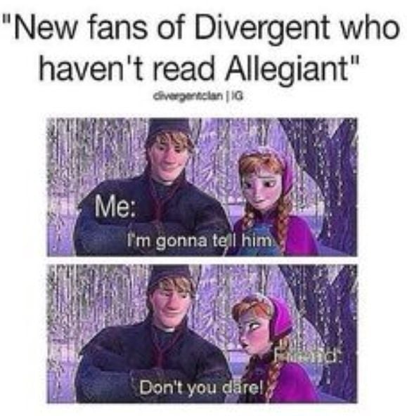 Yeah. I havent finished Insurgent yet. Soon I will though.