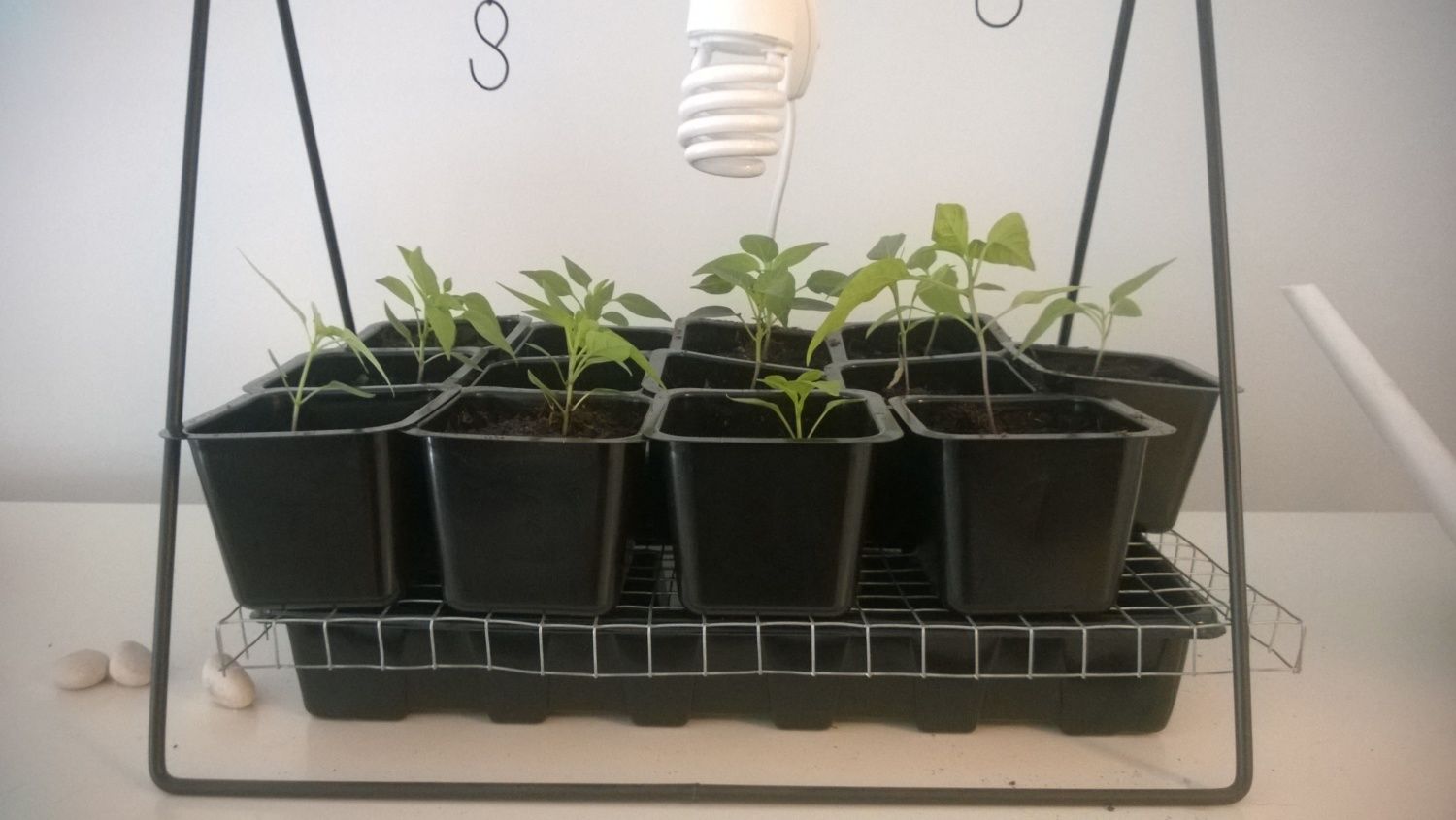If it's unclear to someone still, my favorite part of gardening is building all of the things that make it easier, like shelves, raised beds, watering systems and mini greenhouses. The gardening itself is just an interesting study in how my ideas work. I'm glad to see that the self watering system I put together for the chilis is working nicely. The light I was using did break though, luckily it happened the day before we left for our trip so I had time to jerry rig something together. I need to get a new light, but I can't find any info on the warranty, so I'm waiting to hear back from the manufacturer first before I go buying something else.