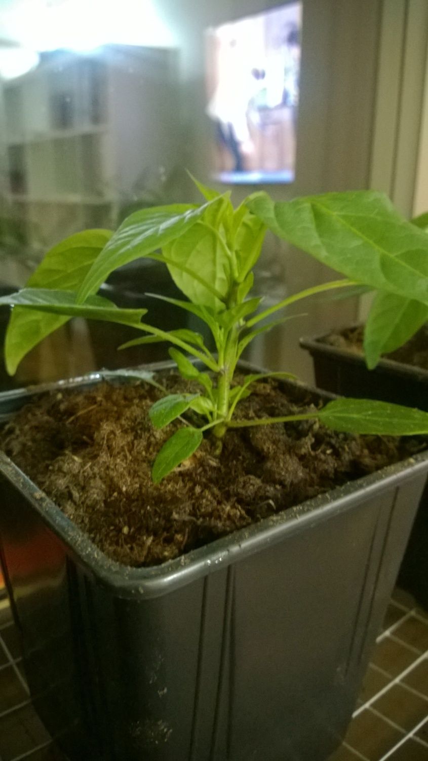 I also moved these guys to the window instead of having them under artificial light. We should be having a bit of sun the next few days, so I think they will enjoy it. I don't know if they would have had to been moved yet, the roots have reached all the sides and some were protruding from the bottom of the pots, but the soil was in no way full of the roots. I just thought this would be a nice time to test the compost, and it's also starting to get a bit crowded foliagewise under my grow light. The Dragonchili especially is making loads of leaves, I think it looks pretty cool how many new ones are appearing on the stem too.
