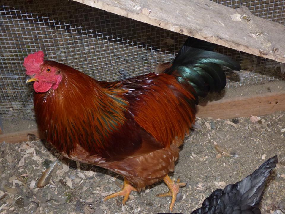 it's a brown red OhikiX chocolate Orpington cross. Figure I'll breed her back to my ohiki as she's almost perfect for ohiki type. I'm sure she'll have red earlobes but I can work that out.