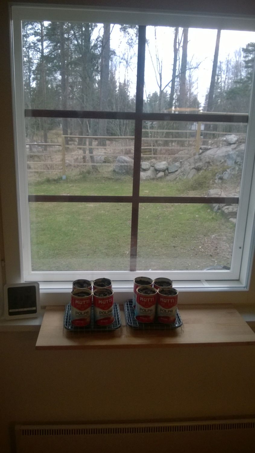 Rigged the bedroom windowsill with a shelf. Planted some herbs and lettuce, these will eventually go to the bunny hutch gutter garden.