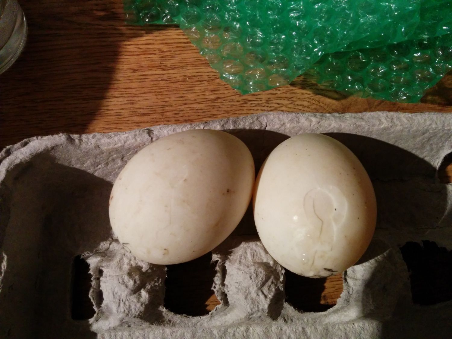 Look what arrived!!! 2 broken eggs, but she sent 3 extras! I wonder if the broken egg on the left could be fixed with some clear nail polish and still hatch? It didn't leak the one on the right Did I mention those eggs are huge!!