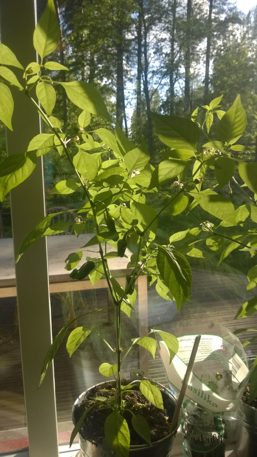 Maters seemed to suffer from being moved out into the cold, most of the leaves they had then look like they're starting to die. Luckily they're growing new leaves quite nicely too. The chilis that went outside are doing much better, but I still have six of them inside. The Apaches are producing like crazy already, and there's flowering on the others too. Sunchokes broke ground about a week ago, and we planted carrots and beans in the weekend. I still need to start some more stuff next weekend.