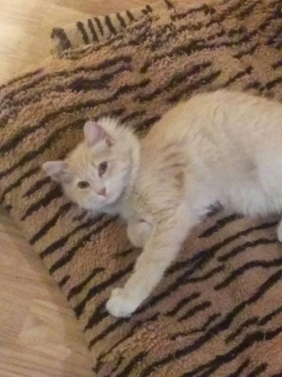 Well, here is our newest addition: she was hubby's idea against all the mice. We've had mouse problems in previous winters. This fall we've seen mice outside during the day just running around. This is when we figured there would probably be a lot of mice again this winter.. bad sign....