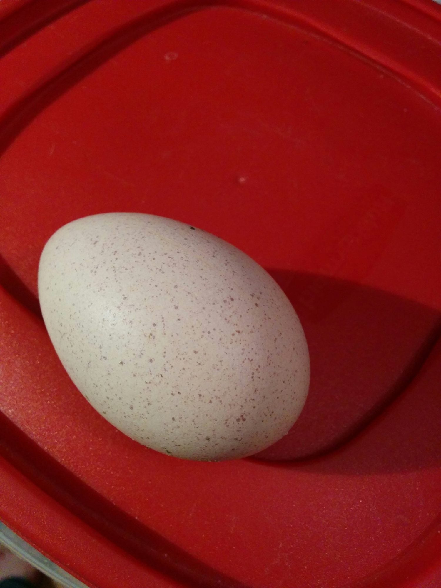 I tried for a while to figure out what it was, didn't have the smooth waxy texture my ducks lay, but way too big for a chicken at 81g! Even for a new duck layer egg, too big.