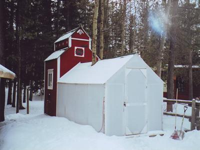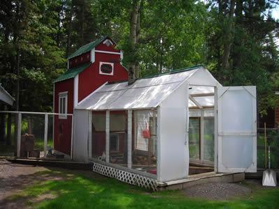 First chook coop we built here - the Coop fur Sure mimics a prairie grain elevator (another dying out landmark), tenplast on the outdoor run (roof and sides in winter) allowed alot of light in...so much so it was almost like a greenhouse. But this plastic product will eventually become brittle, sunlight harming it and once brittle...the hail we get can and have received since 1998 has punched holes in tenplast roofs...we redid my greenhouse roof to coloured metal too. Every building material has its good and bads...wading thru the choices on what works in yer own backyard is just part of the challenging fun to be had.