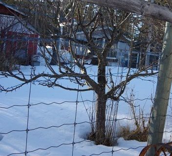 This is a Dolgo Crabapple that was not thriving in the New Orchard...moved to the veg garden plot and she is huge...needs a pruning to remove the suckers on the side this coming spring, but doing really nicely. Makes me feel old when I know I was the one that planted this and it was tiny...now it is impressively thick trunked.