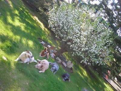 The pups, the grouse, the fruit eating grosbeaks...all feast upon the crabapples--hang like Christmas ornaments...way kewl