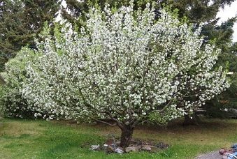 2013 - This Dolgo Crabapple on the left jest covered in crabs of red and yeller; I pruned it back to recovery from the previous owner...