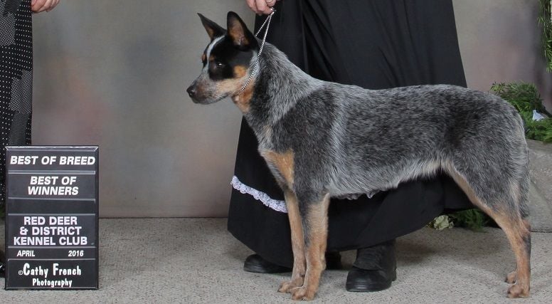 My son and I showed the puppies--been outta the ring for like a dozen years but first day on the Friday, Emmy and I took Best of Breed, Best of Winners, and Best Puppy in Breed (three pups entered with one professional handler shown male). I forget how the Canadian Kennel Club point scoring system works and was told at the Show Desk that Emmy had two points but now see she is listed as having three points and is the top eigth Australian Cattle Dog here in Canada. So I am no wiser and even more confused. I do believe that a dog needs one major (looks like Emmest got that on the Friday--yee haw) and a total of ten points to receive a Conformation Championship under CKC rules.