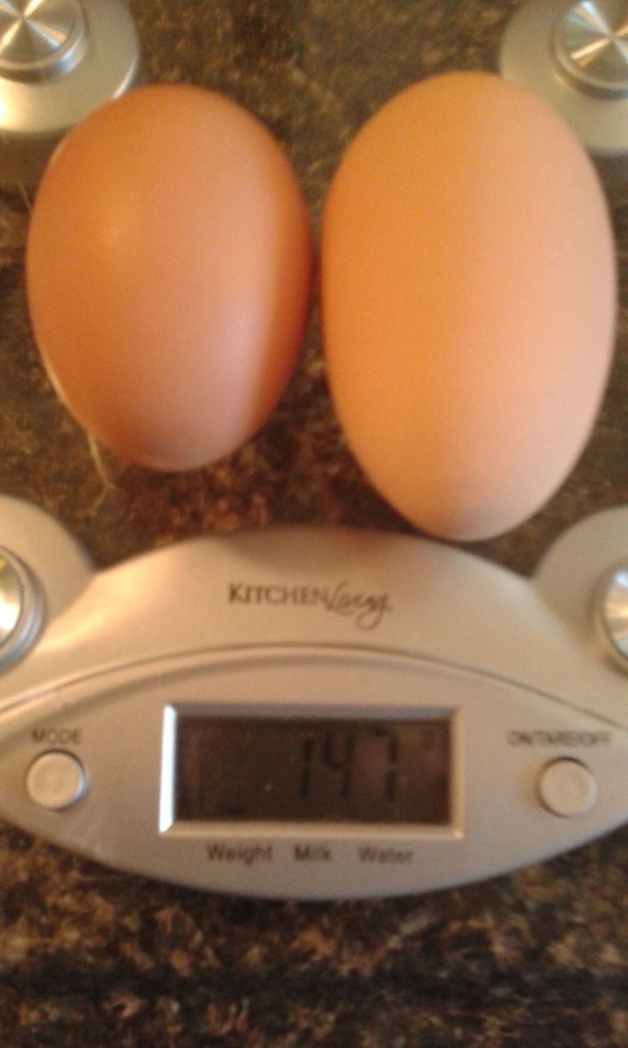 15 gallon chicken nipples waterer working good, no leaks. Saving jersey giant eggs. I hear long torpedo shaped ones don't hatch good, one of my pullets has been laying that shape. Now she's laying huge ones, mid 80s grams. Other pullet laying normal shaped eggs mid 60s grams. Hopefully the large size of the long eggs now helps, they are not double yolkers.