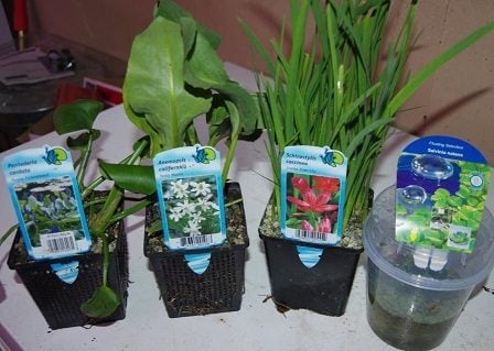 Rick picked out three new water plants to try out this season in the fish pond and waterfall.