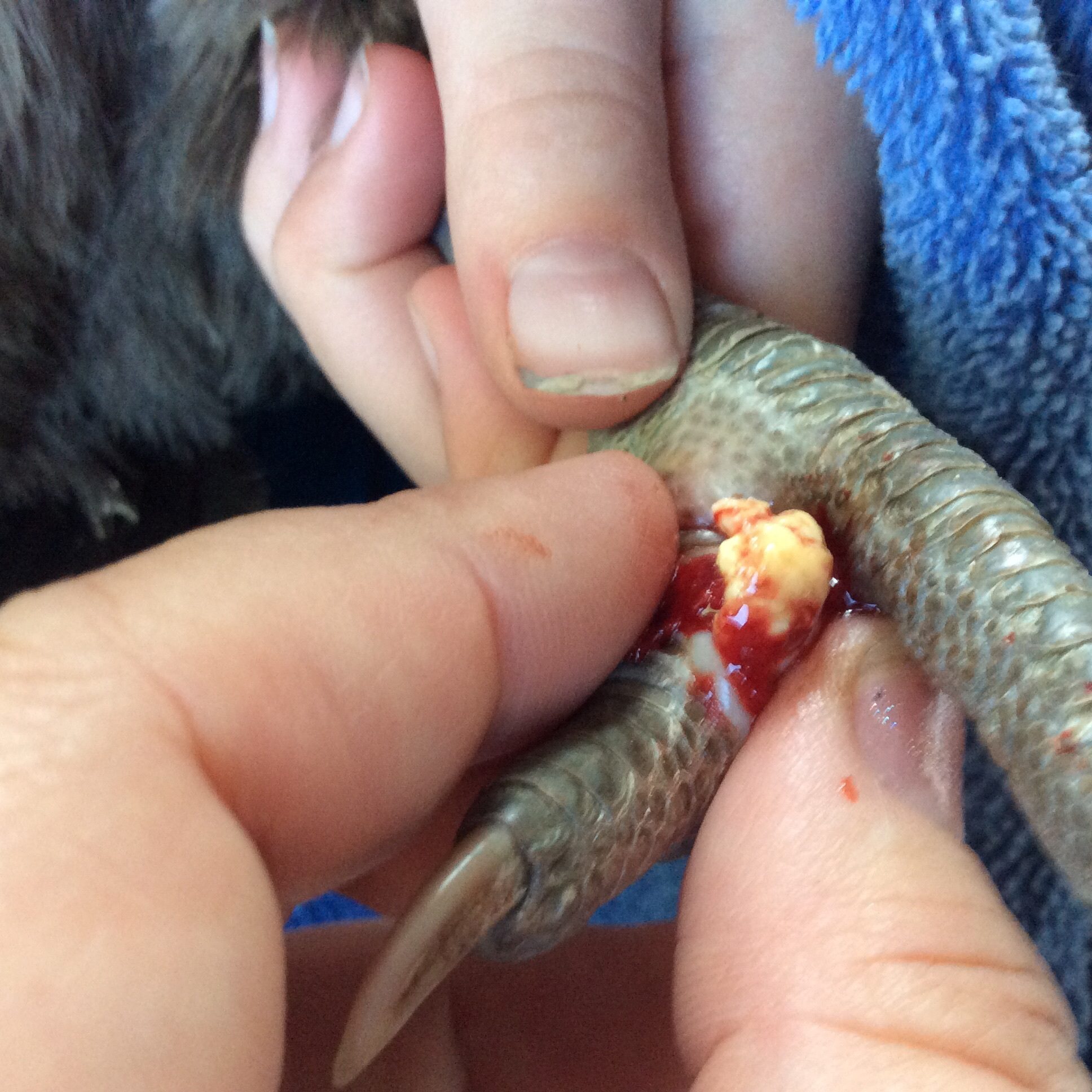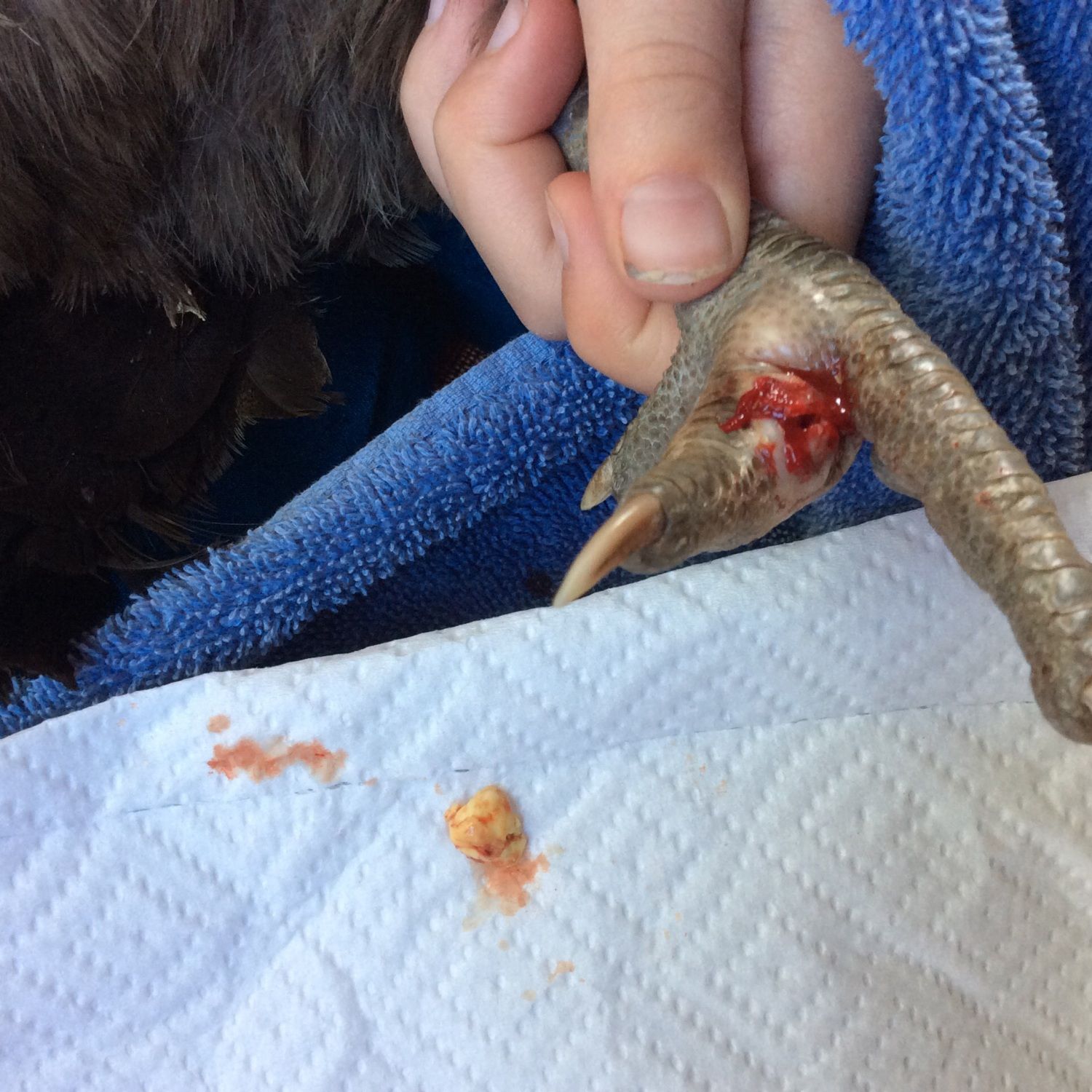 WARNING! WARNING! Graphic pics of bumblefoot surgery! DD and I tackled it yesterday. Hoping we got it all.