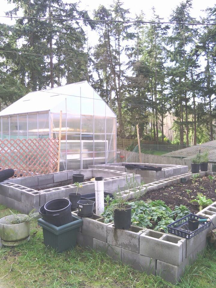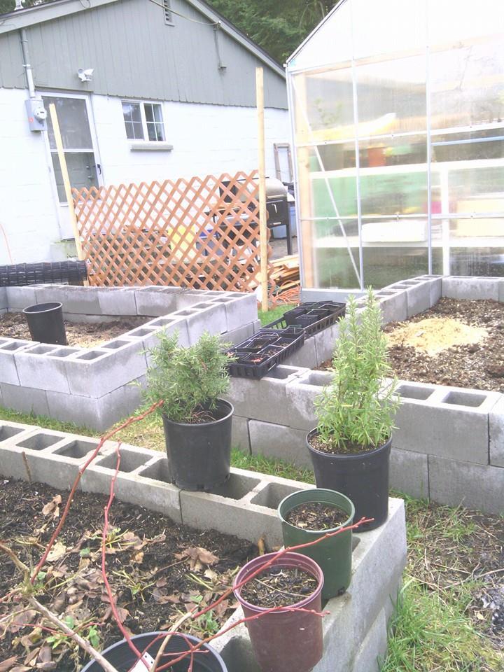 finally got the last of the cinder blocks so it's raised up two levels in the two smaller beds still will raise the long bed one more coarse, got the lattice in for when the hot tub finds a home next to the greenhouse and in that spot...there is my kitchen door I can come and go while cooking to grab something from garden love the access