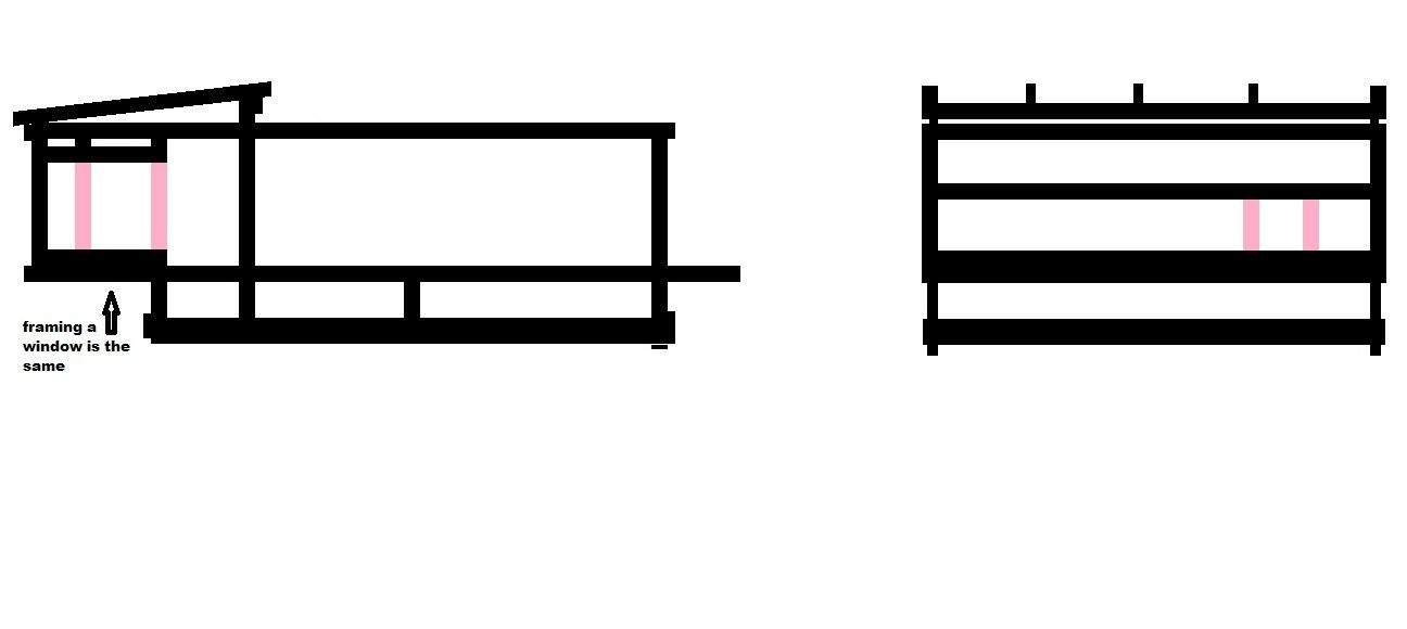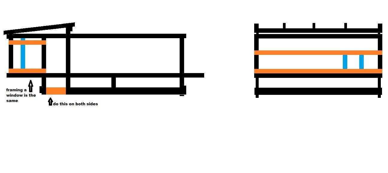 decide how big you want your doors in your coop. and lay out as shown in orange and blue above. if you want a window on the other side, simply do the same thing.