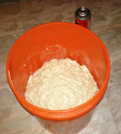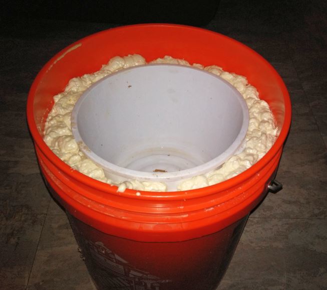 iii. Add foam to the appropriate level (when dried it should rise to about a 1/2 from the top of the bucket)