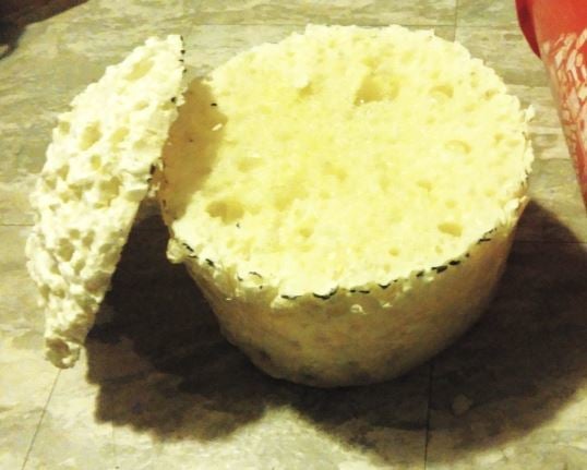 iv. Using a knife, level the cured foam in the bucket. The level of the foam needs to be high enough so that when both 5 quart stacked buckets and sit in the 5 gallon and the top 5 quart bucket is slightly lower than the top of the 5 gallon bucket with the foam in it