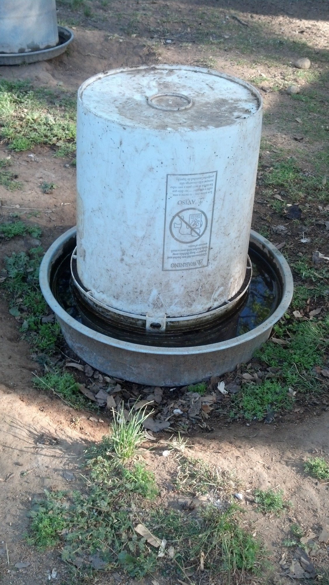 That's what I do too. I'm too lazy to make it complicated. I have found the darker buckets (from Lowes) prevent algae growth (though putting the waterer in permanent shade is even better).